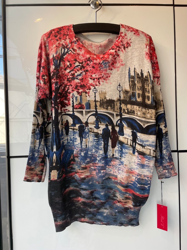 柔らかく軽やかな着心地のプリントロングニットです。 個性的な景色のプリントが施されており、他にはないスタイルを生み出します。シンプルながらも印象的なデザインで、さまざまなコーディネートに使える一枚です。 素肌に優しい綿とポリエステルをミックスした素材感は、ノンストレスで着られます。 大人カジュアルにぴったりで、デイリーからお出かけまで幅広く活躍します。 シルエットはすっきりとしたロング丈で、体型カバーもしてくれる優れものです 【サイズ】 01サイズ(ワンサイズ) バスト…130cm 着丈…72cm 裄丈…74cm 【素材】 綿85% ポリエステル35% 透け感 なし 伸縮性 あり ポケット なし 裏地 なし サイズ表記は平置きにしてメジャーで採寸しているため、多少の誤差が生じることがあります。ご了承くださいませ。 【在庫切れの場合】 この商品は当店の実店舗でも販売しております。在庫数の更新は随時行っておりますが、タイムラグなどにより、ご購入いただいた商品が先に店頭で売れてしまっている可能性がございます。もし店頭での在庫切れとなった場合は、すぐにご連絡いたします。ご理解賜りますようよろしくお願いいたします。 【色について】 モニターの画面によって色の見え方が異なる場合がございます。実際にお届けする商品の色が多少異なる可能性がありますが、ご了承くださいませ。 【ご返品・交換について】 商品に欠陥がある場合のみ返品・交換に応じさせていただきます。イメージと違った、サイズが合わなかった等のお客様ご都合によるキャンセル・交換はお受けできませんので、ご理解賜りますようお願い申し上げます。