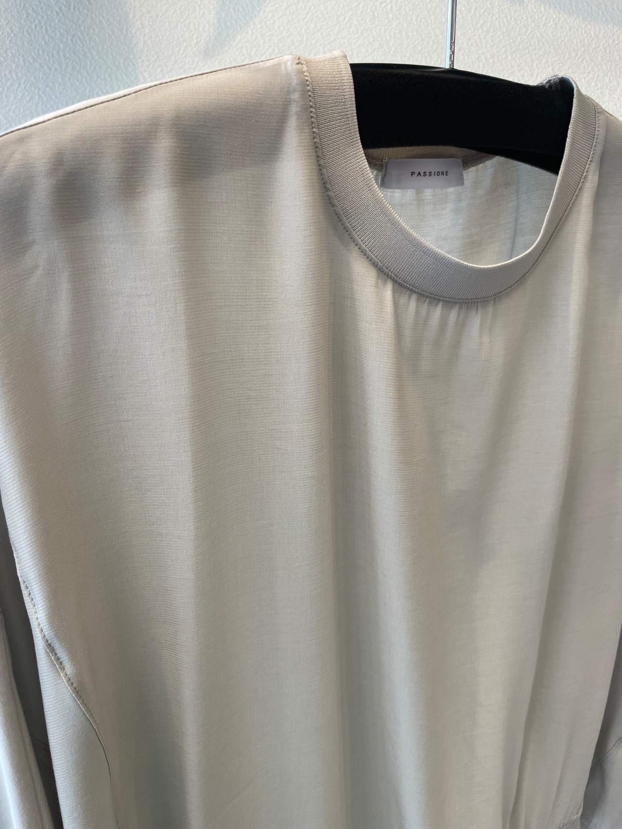 とろみ感のある生地感は、オーバーサイズなのに体に沿い、華奢に魅せてくれる優れものデザイン。