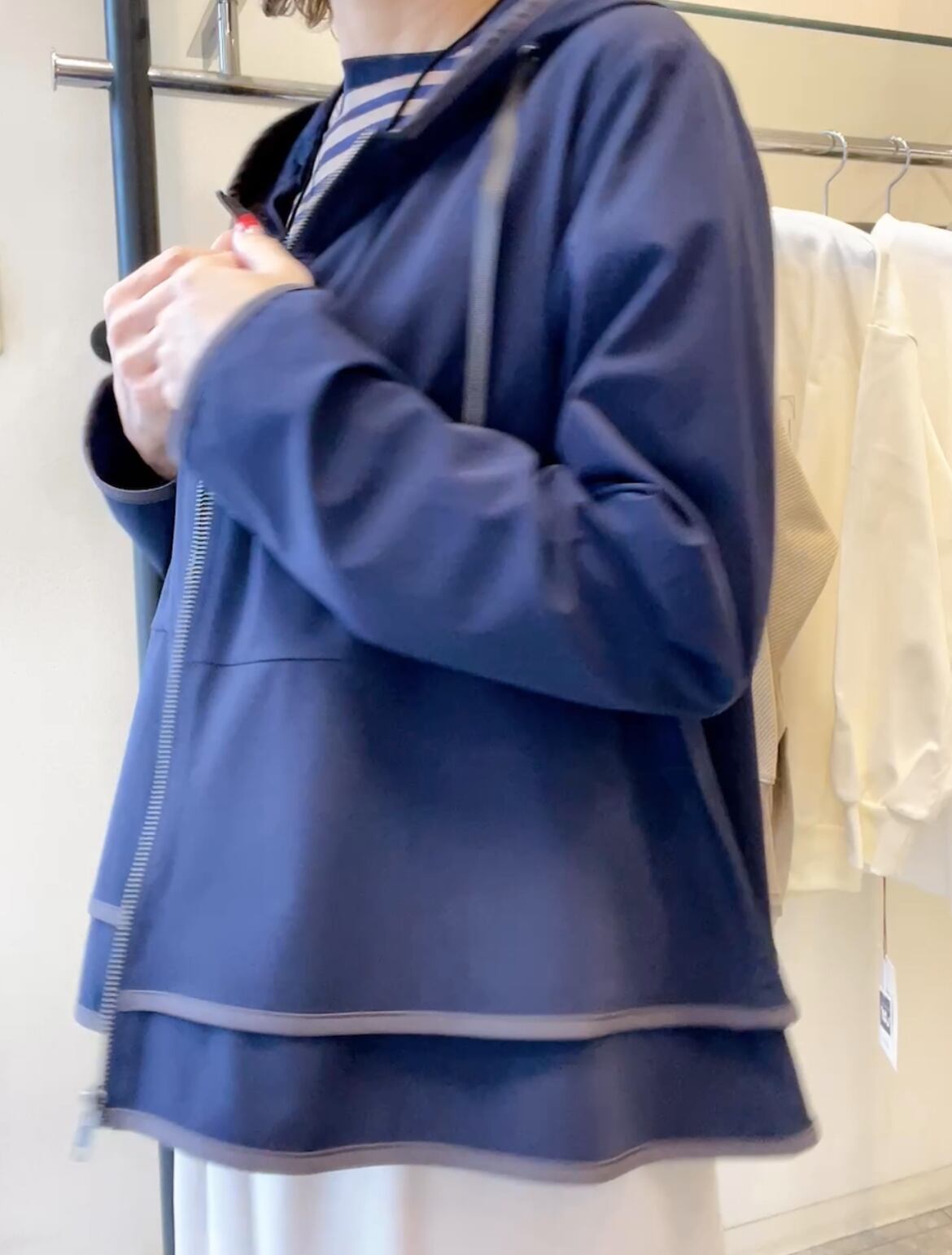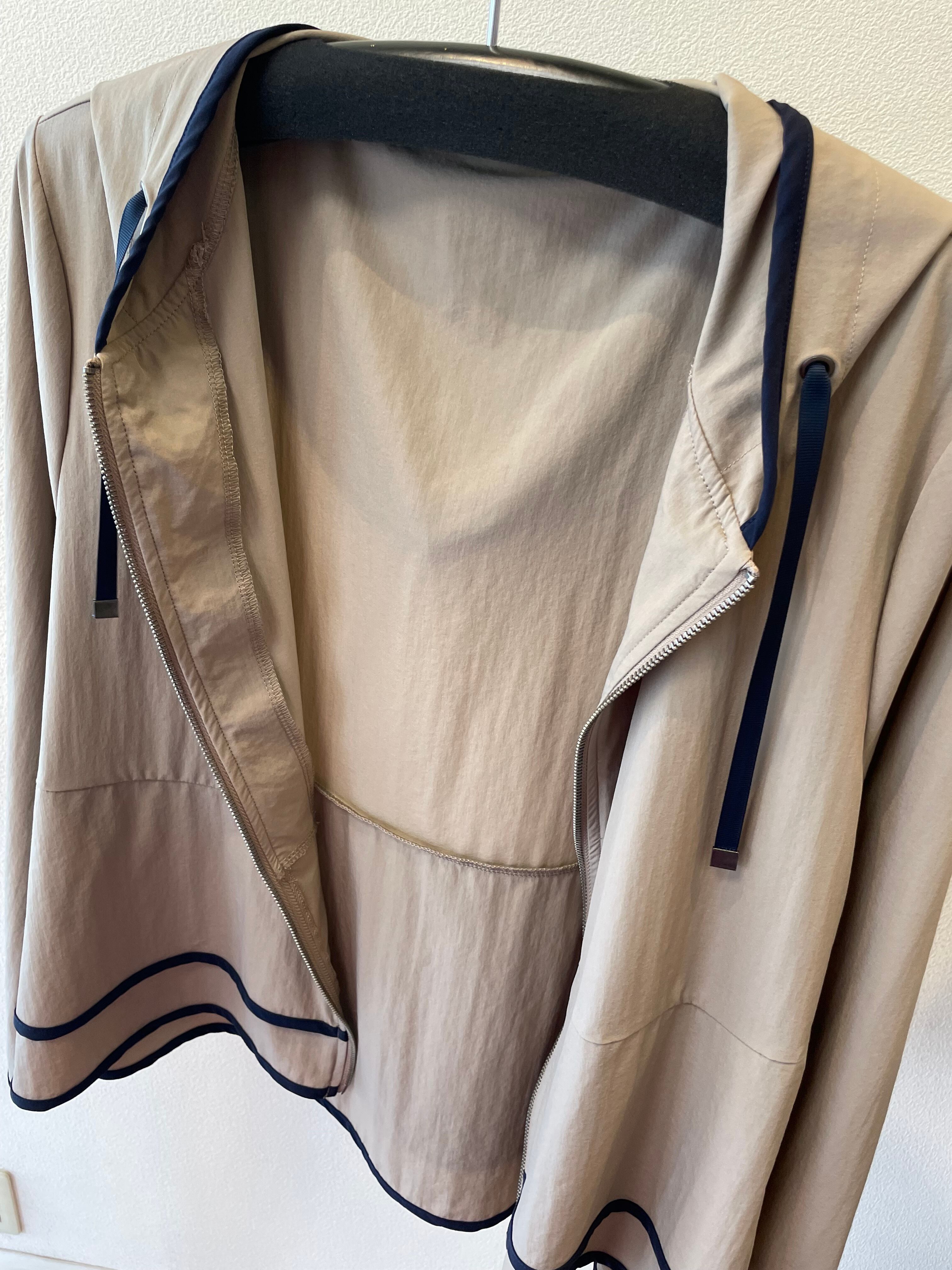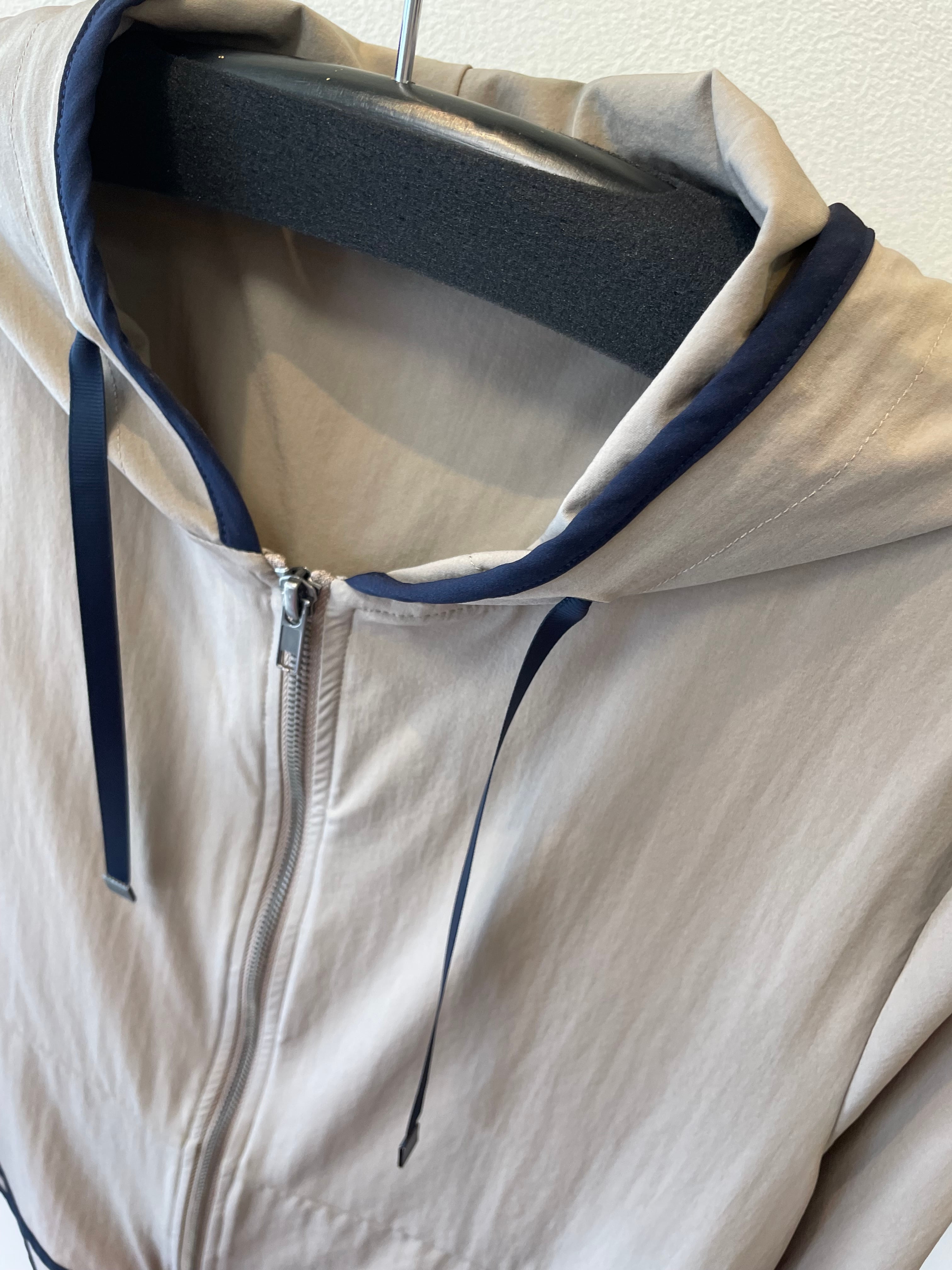 季節の変わり目に重宝する風よけのフーディジャケット。