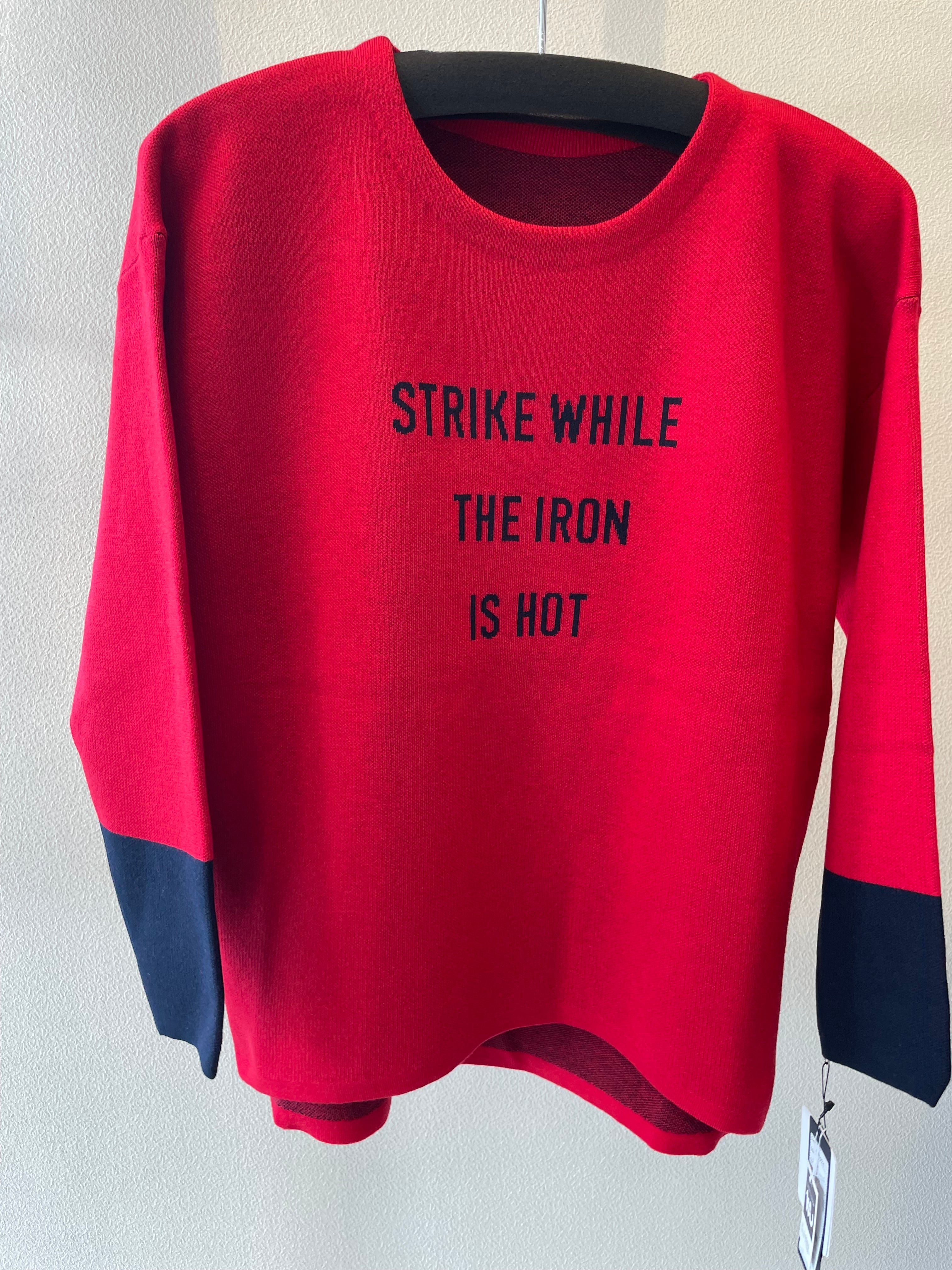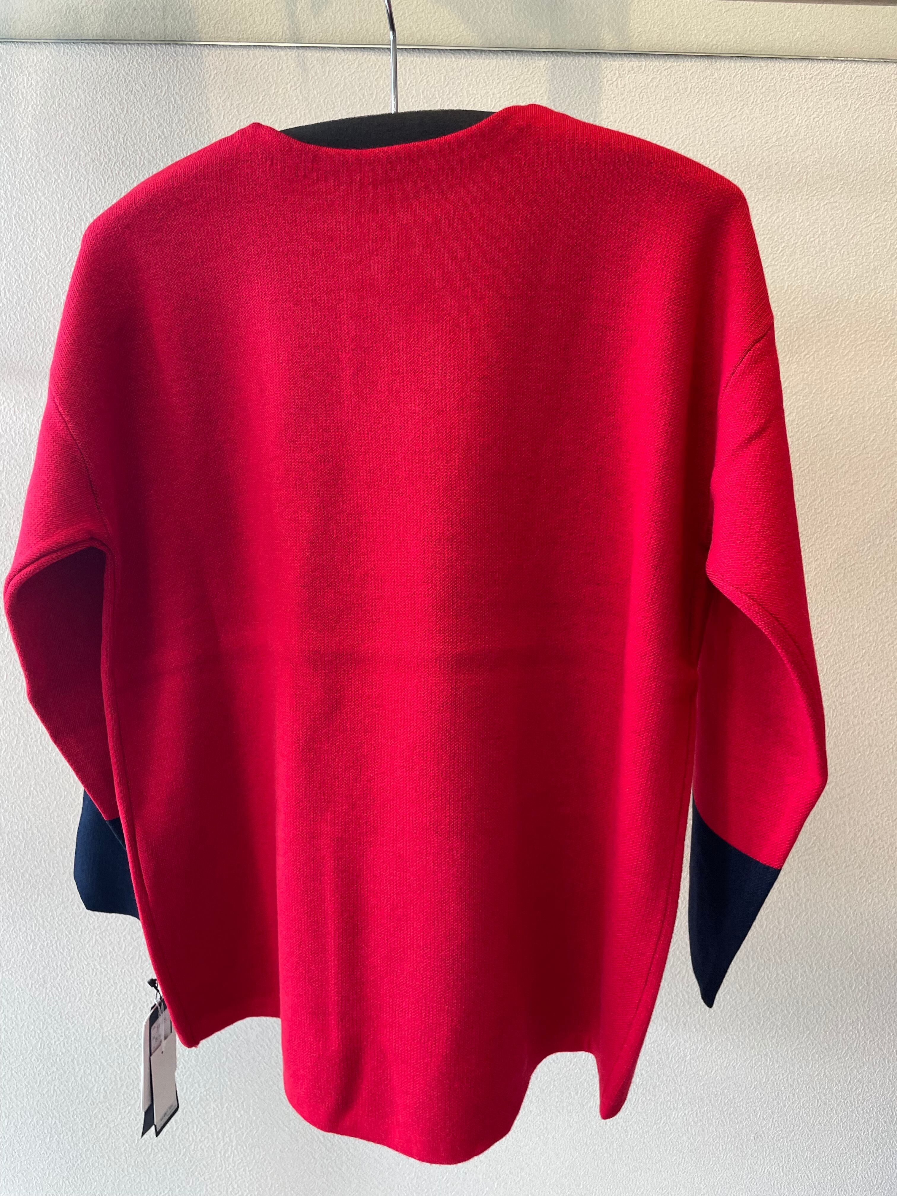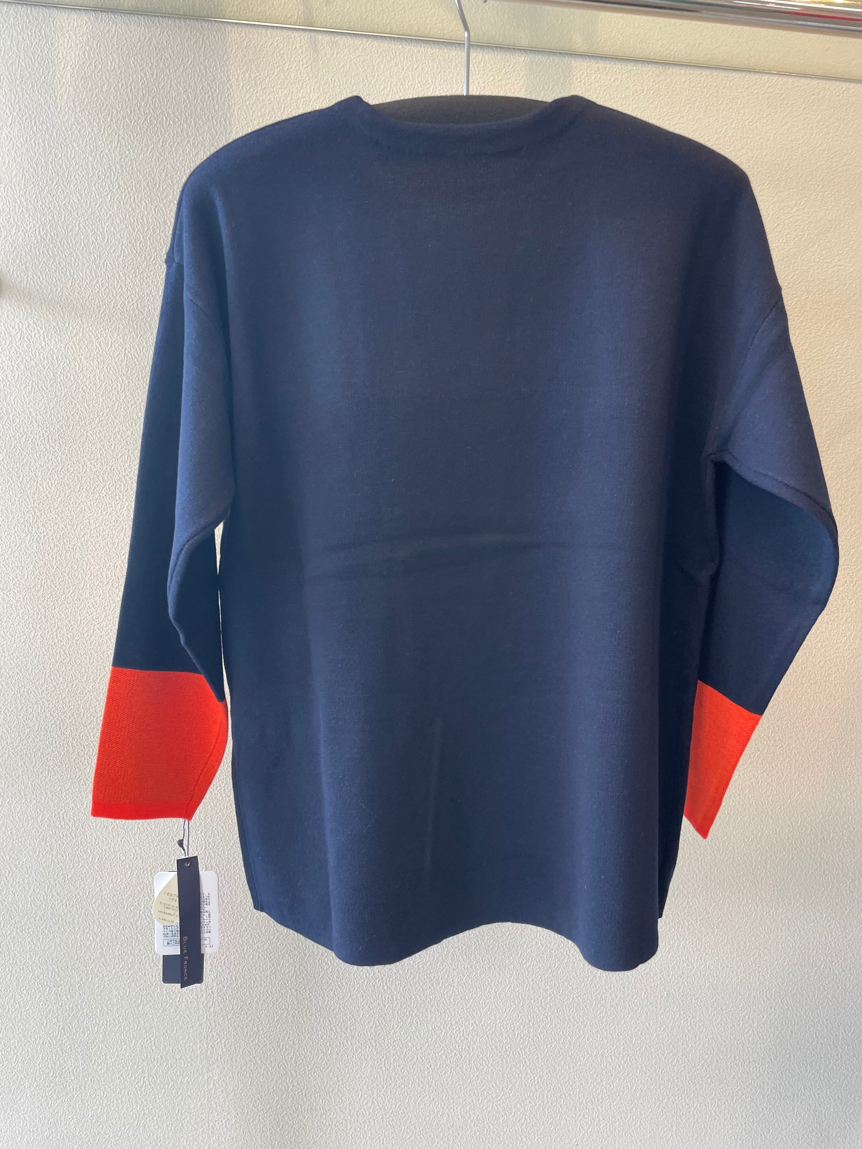 袖口の配色と、シンプルなロゴが印象的なニットです。