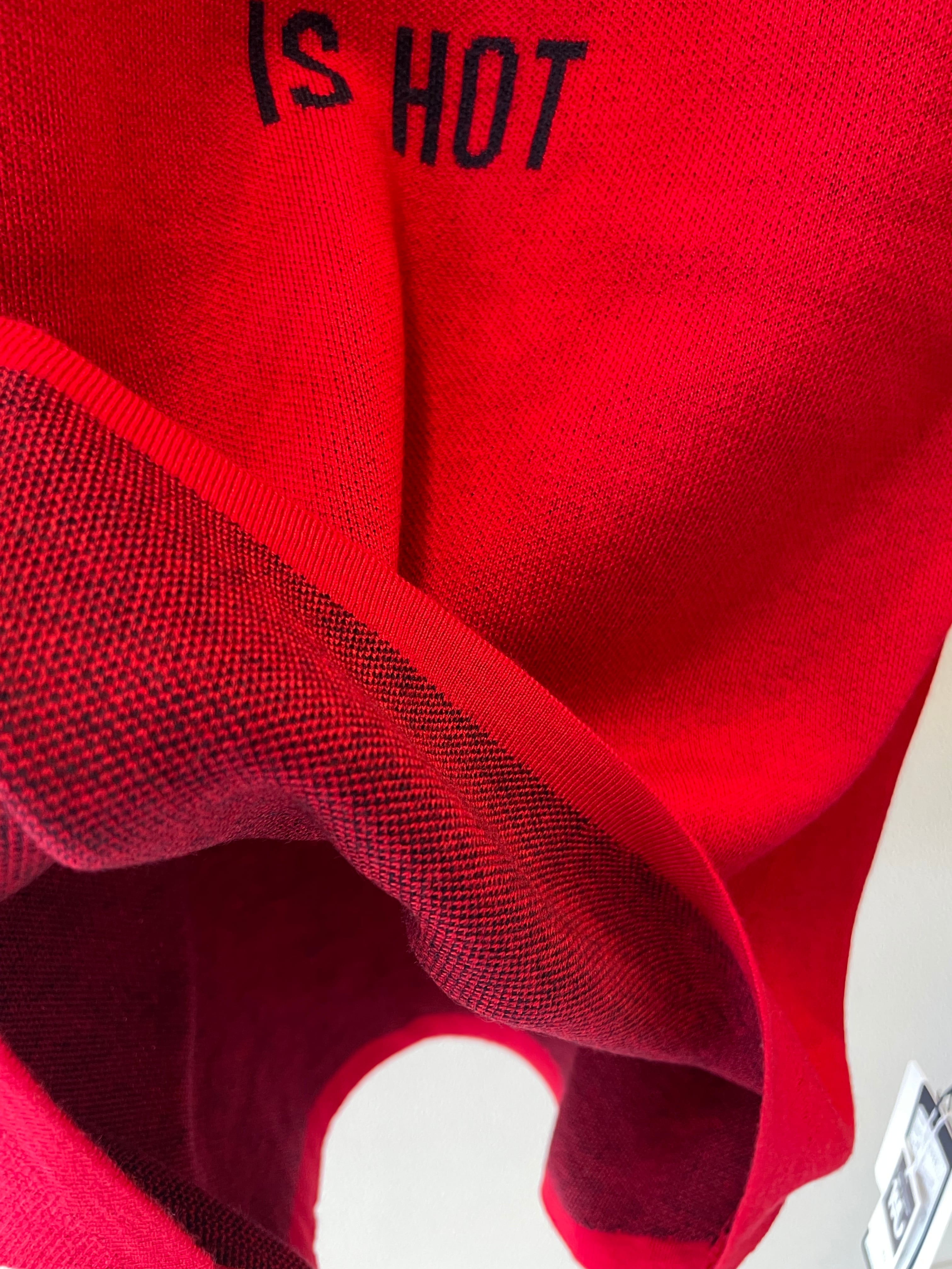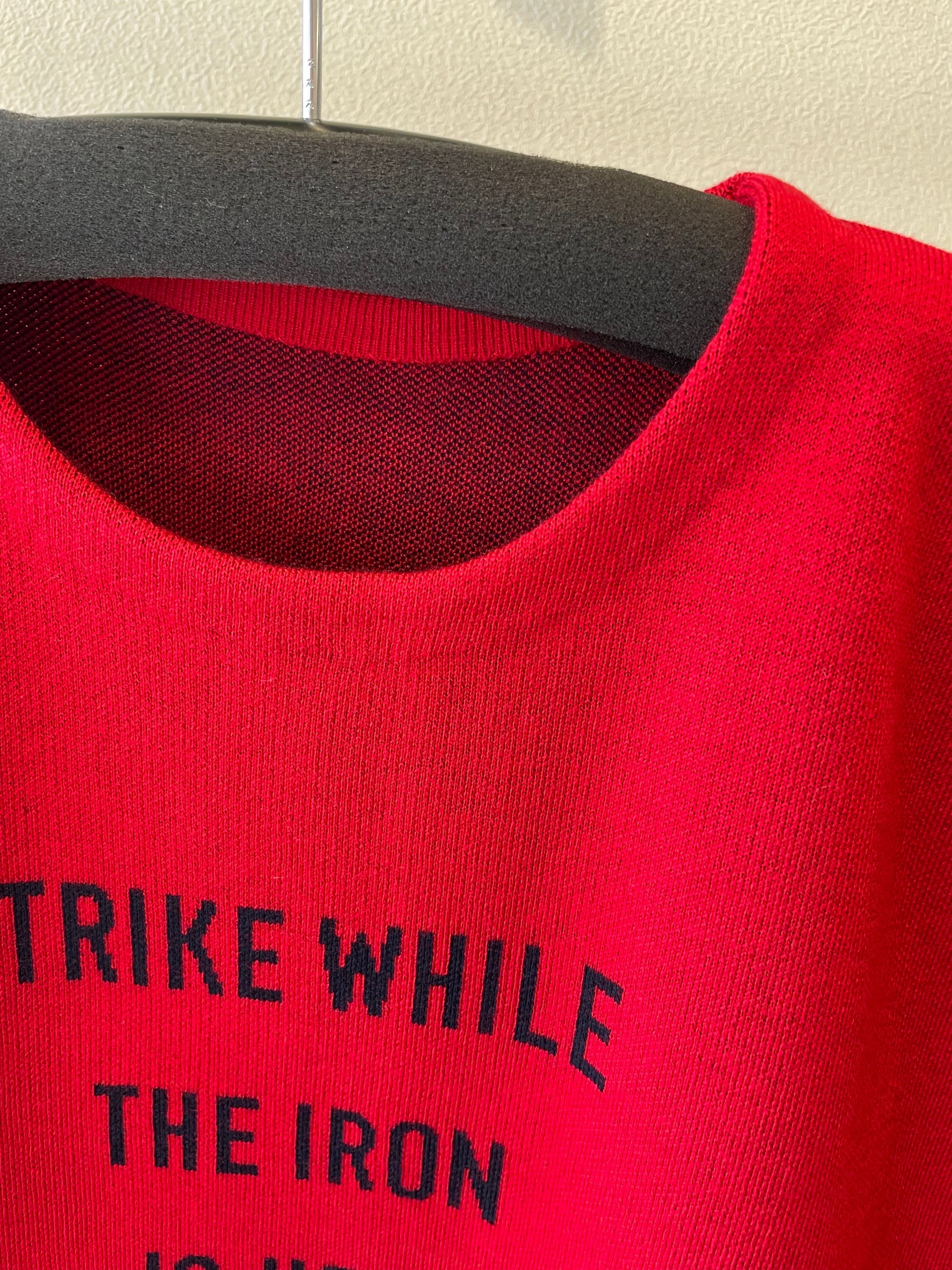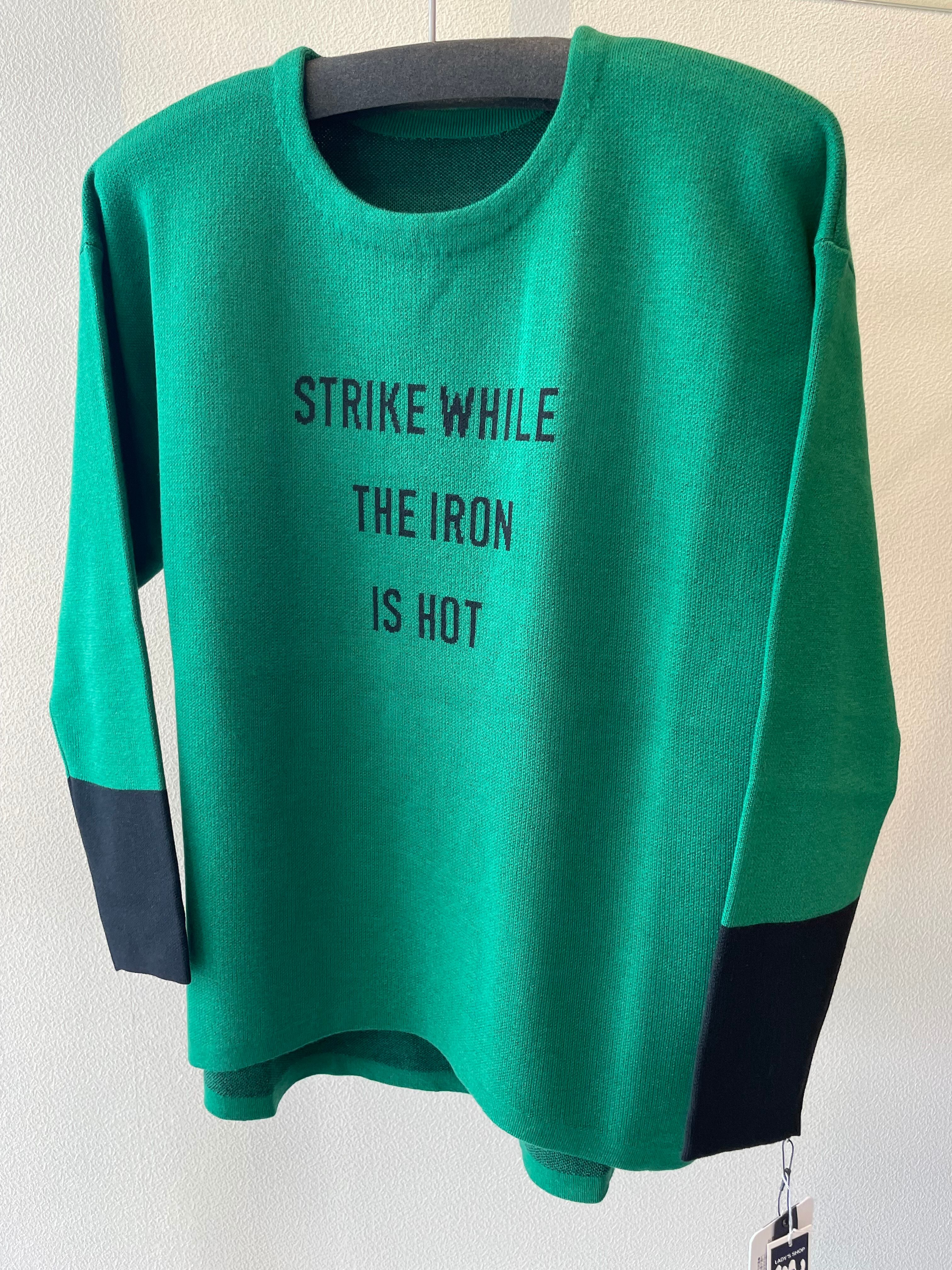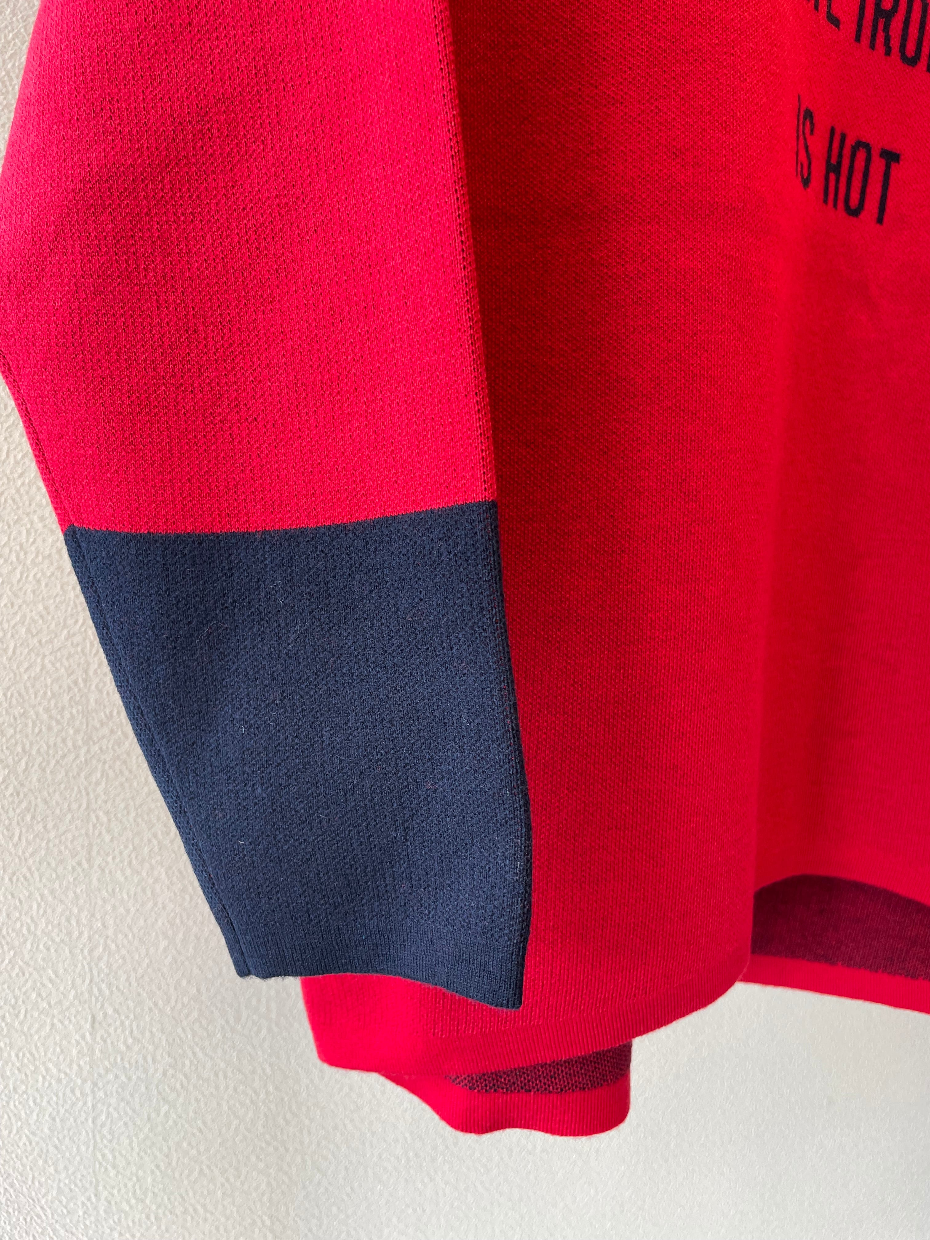 袖口の配色と、シンプルなロゴが印象的なニットです。