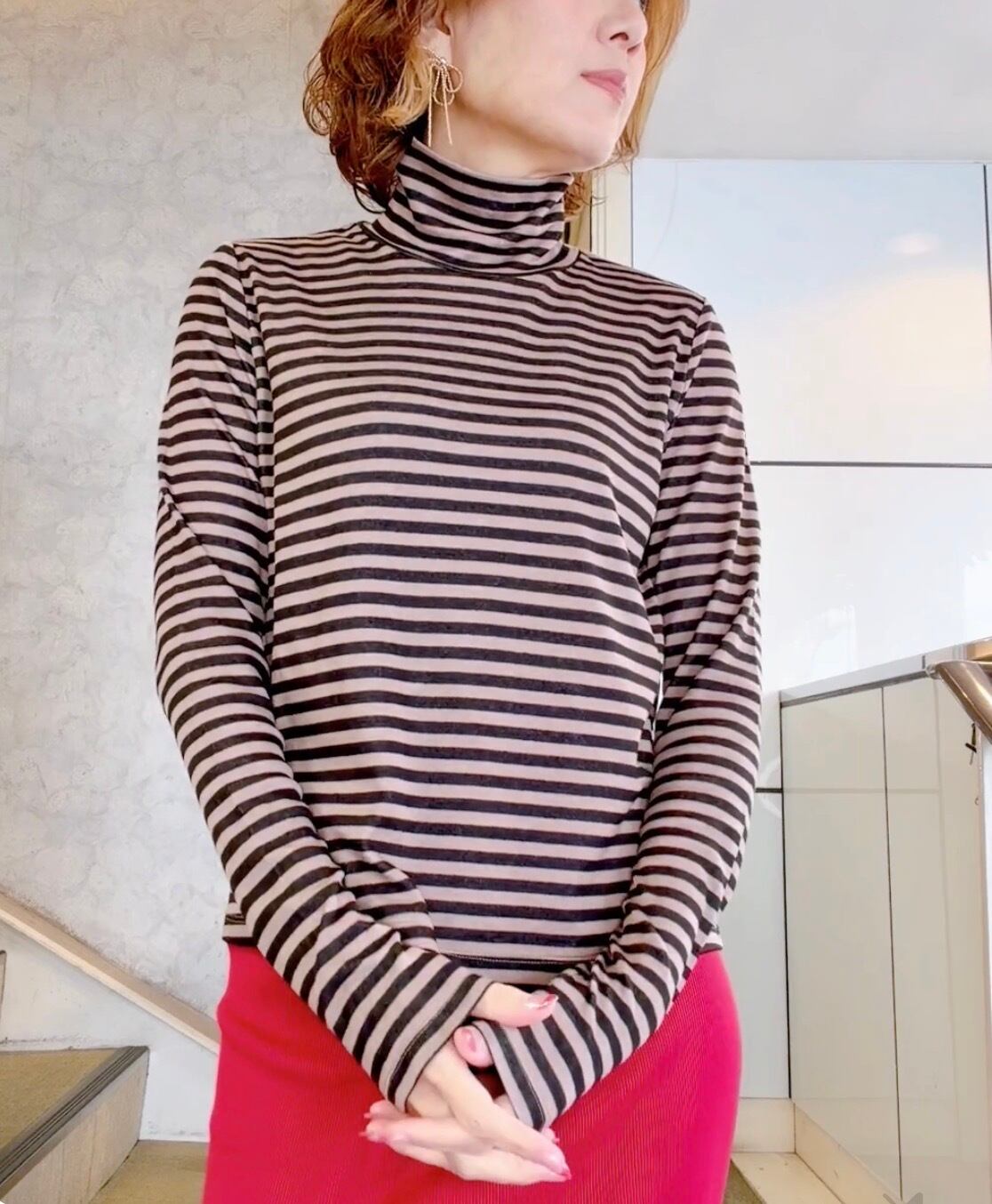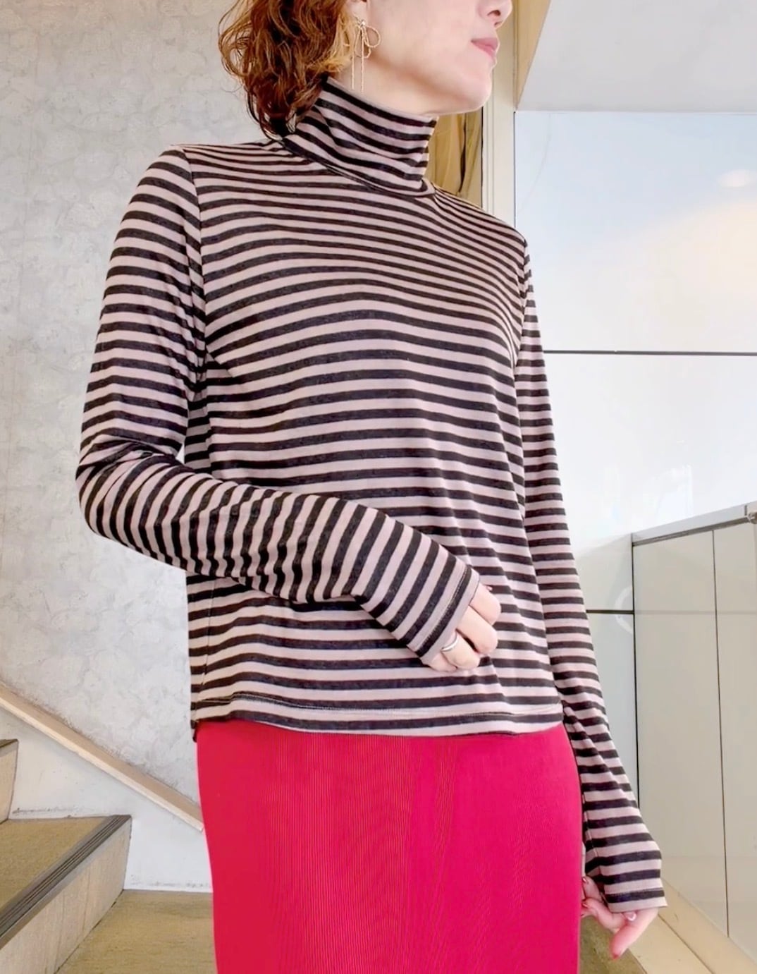肌触り抜群のテンセル素材を使用した、mignonのボーダータートルカットソーです。
