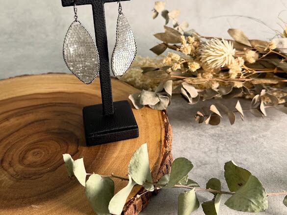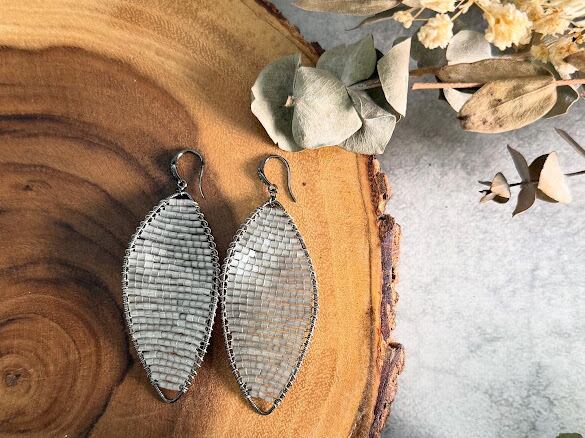 細かく敷き詰められたタイガーアイ(虎眼石)のストーンが、ビーズとはまた違った程よい輝きで品のあるデザインピアスとなっています