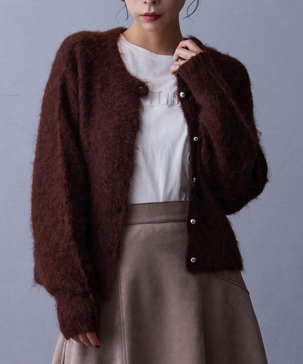 ふんわりとした軽やかなシャギーニットを使用したカーディガンです。
