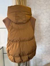 肩にニットがドッキングされたこのベストは、スタイリッシュでありながら暖かさも兼ね備えています。寒い季節のおしゃれなアウターとして、重宝するアイテムです!