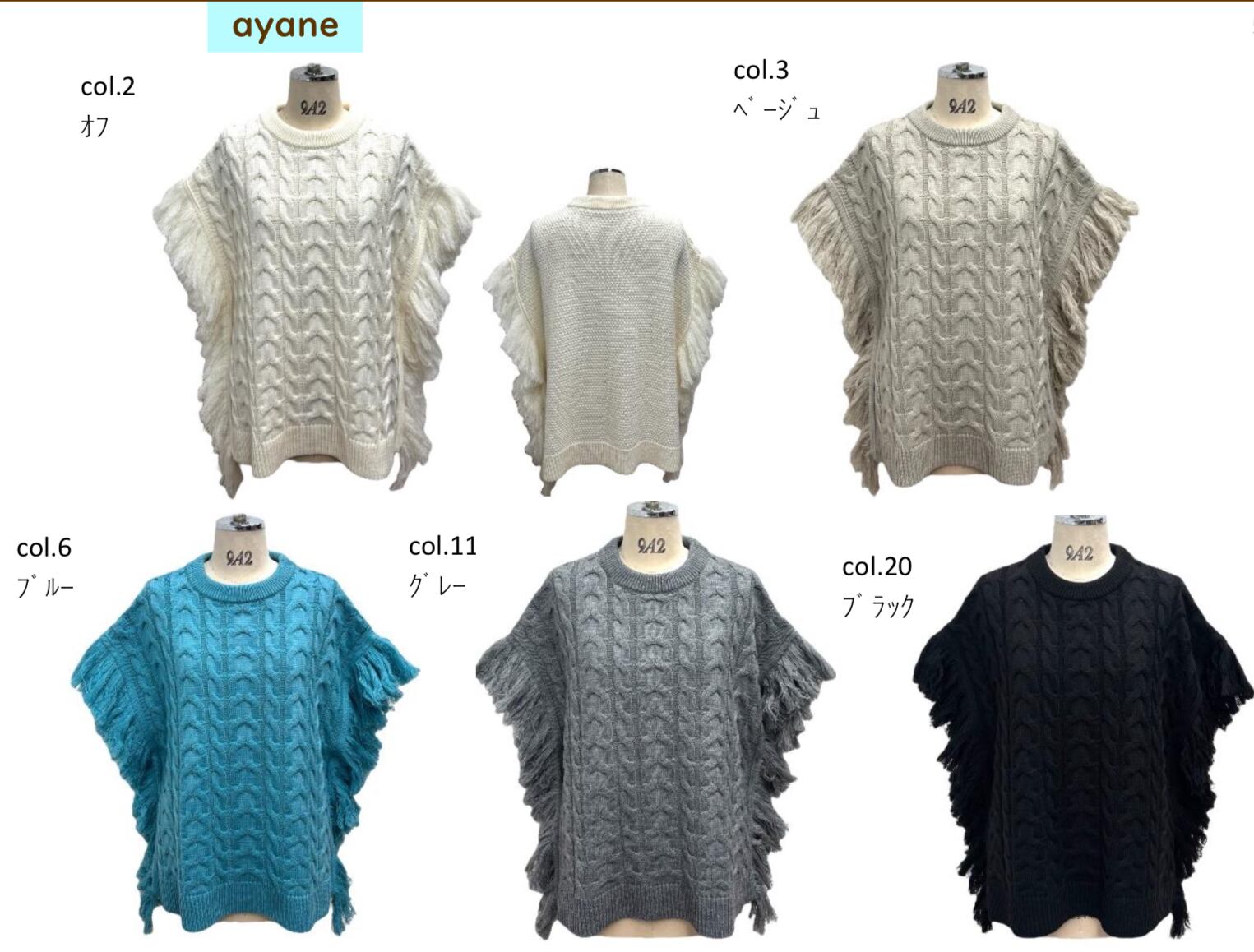 ボリューミーなフリンジの袖が特徴的なニットベストです