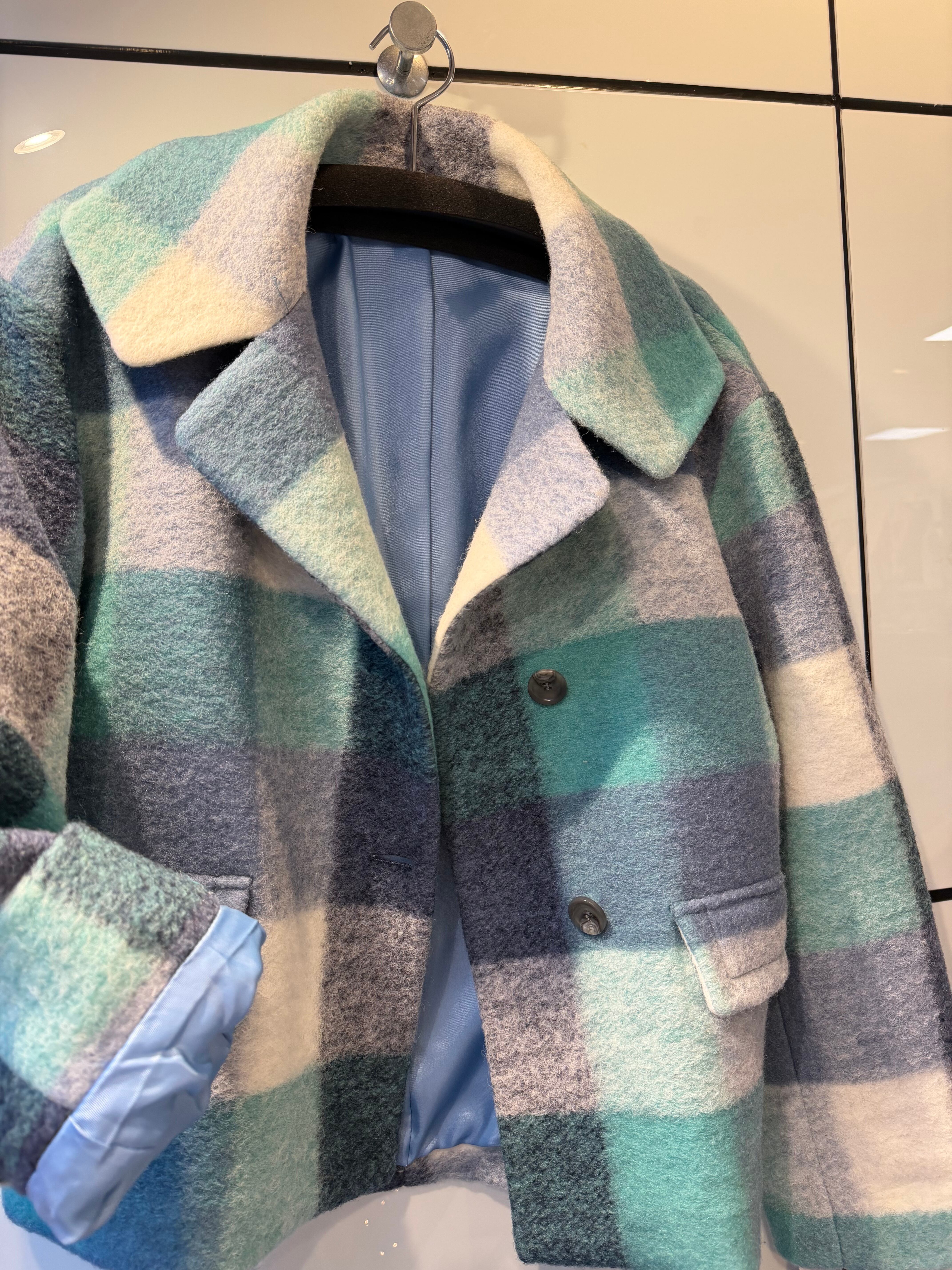 美しいブルーチェック柄が目をひき、シーンを選ばず活躍します。