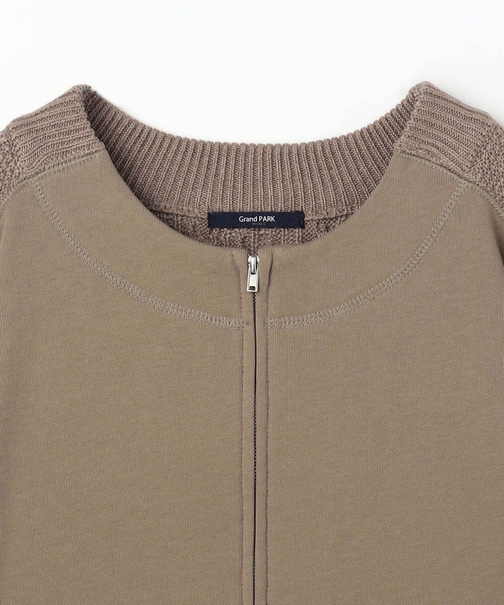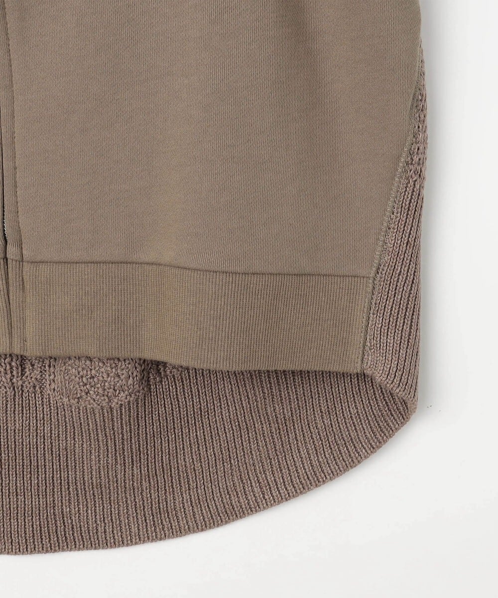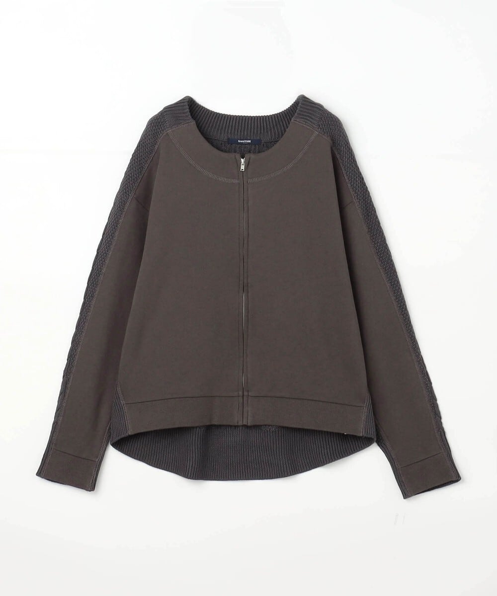 トレーナー地と、ニット地の異素材がドッキングしたZIPカーディガンです