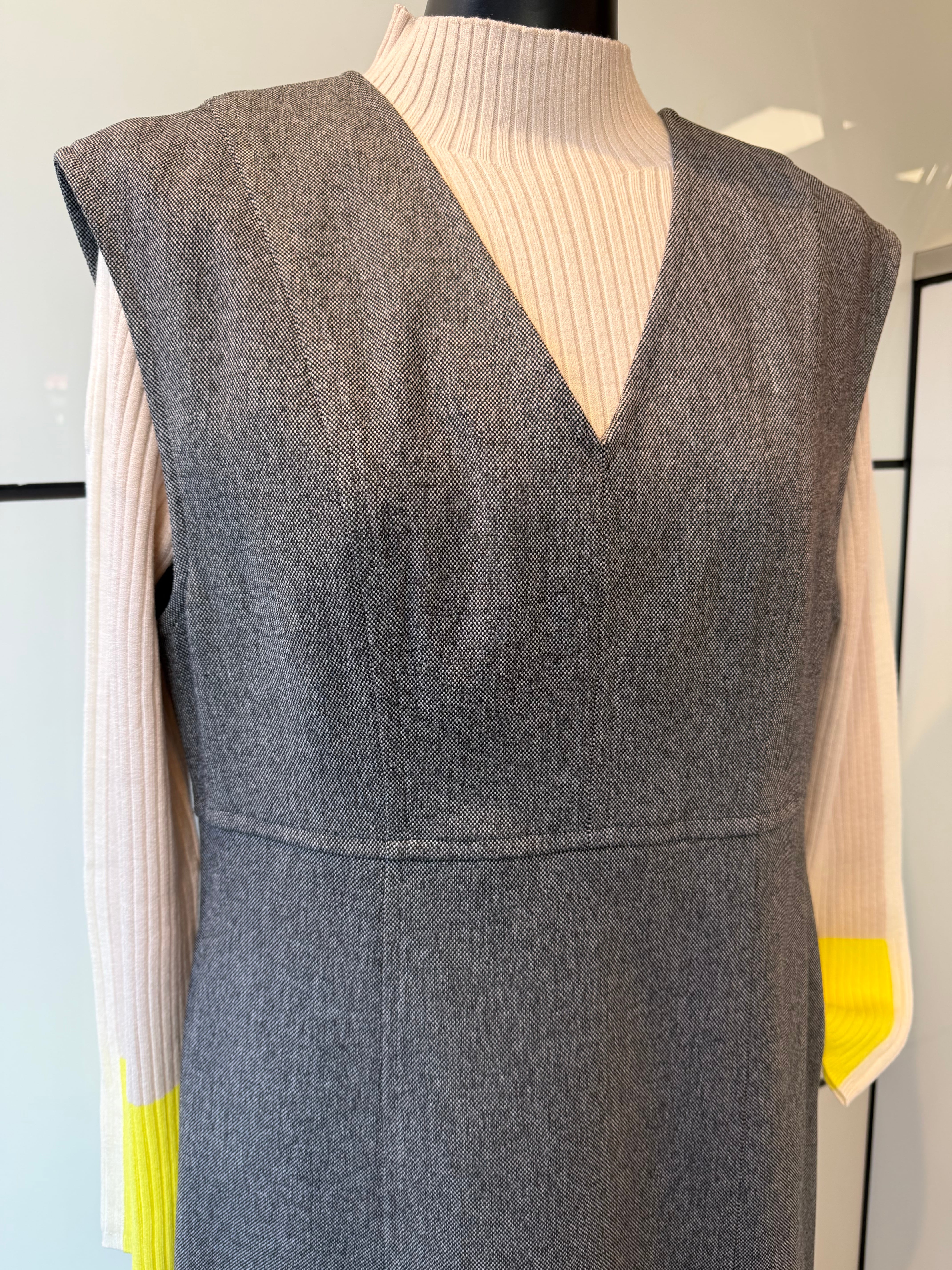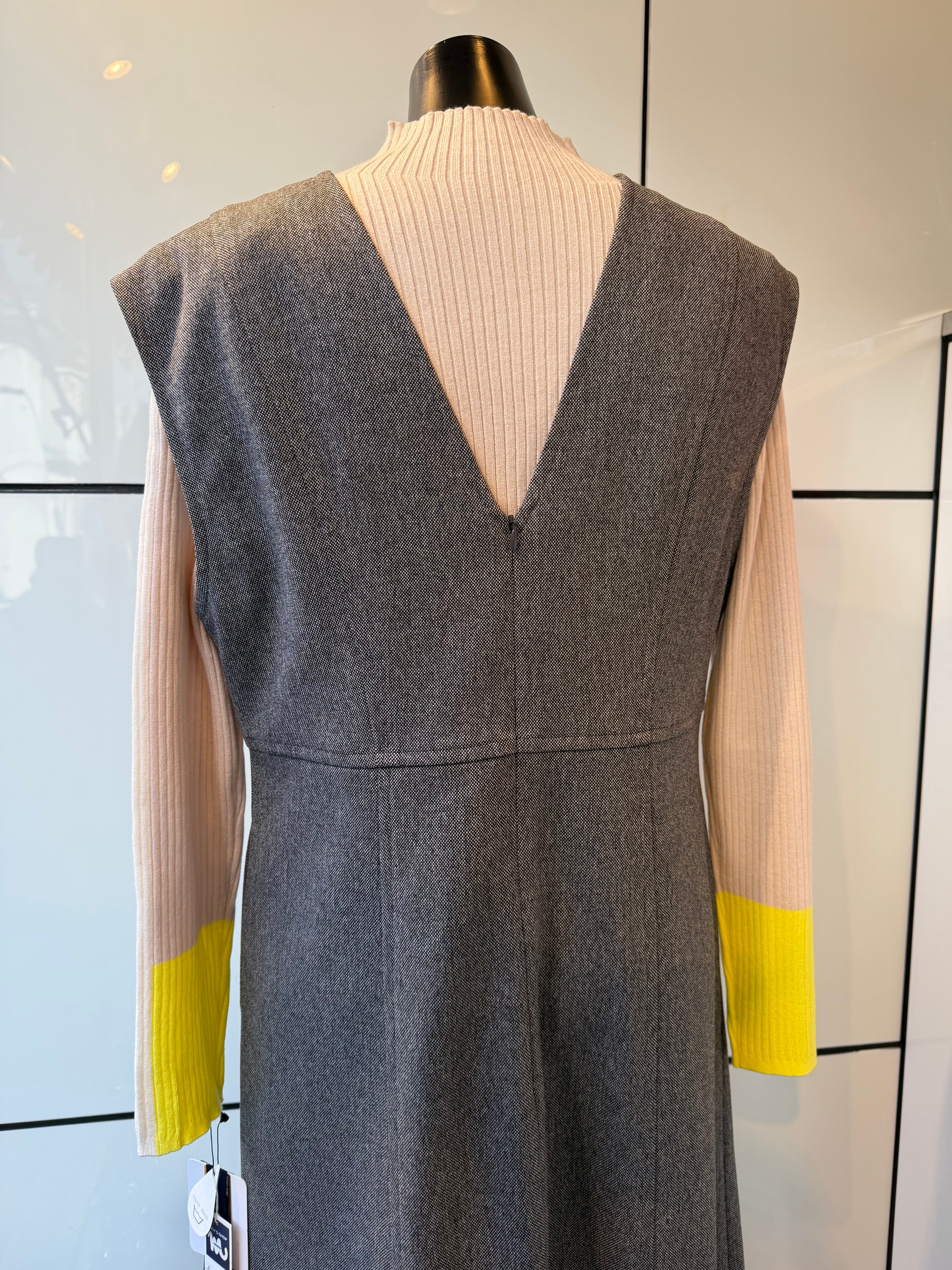 体のラインを拾わないデザインで、ウエスト位置がマークされているので、足長効果にも◎