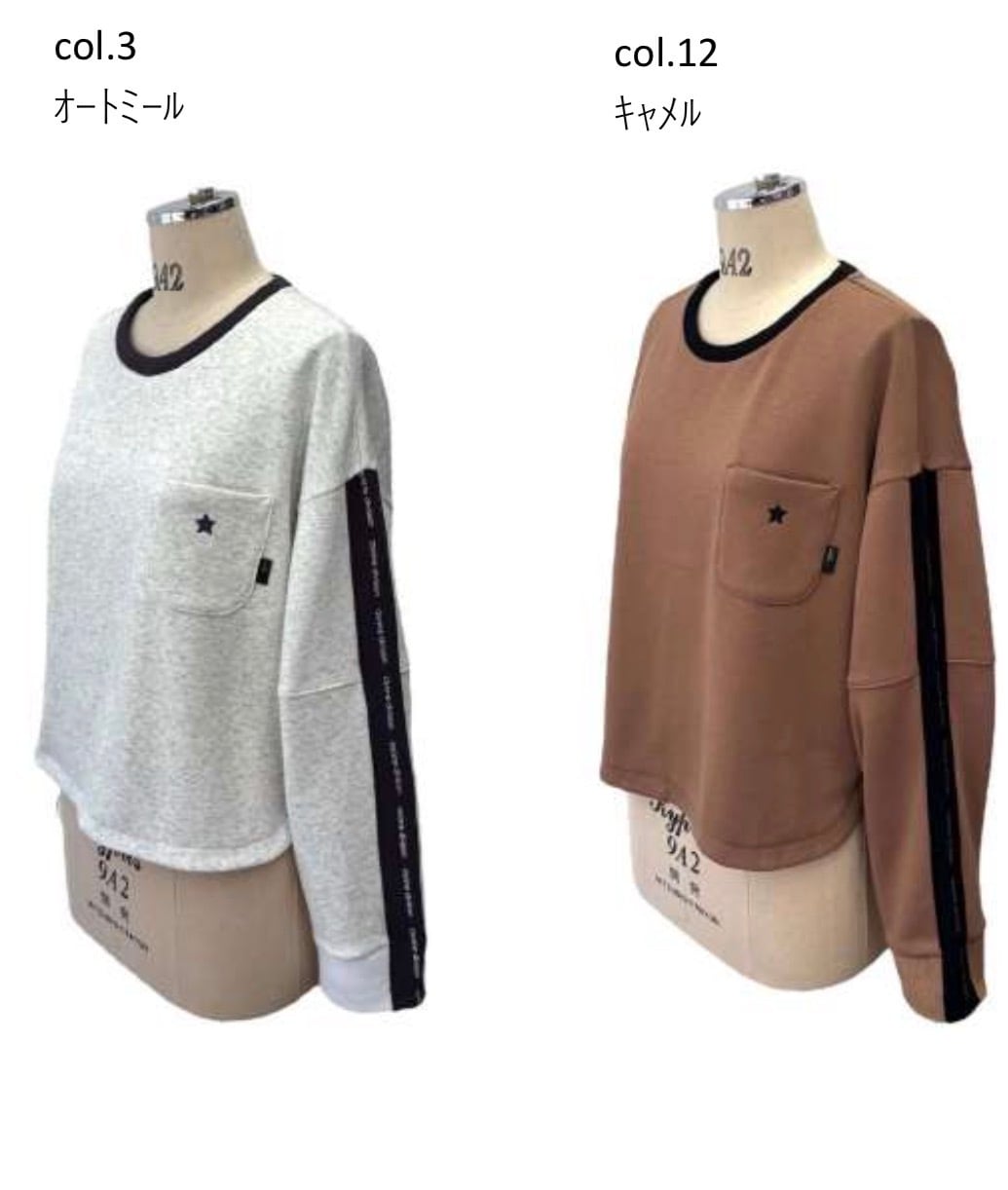 星の刺繍と、お袖のブランドネームが書かれたテープがアクセントとなり、大人カジュアルに大活躍。