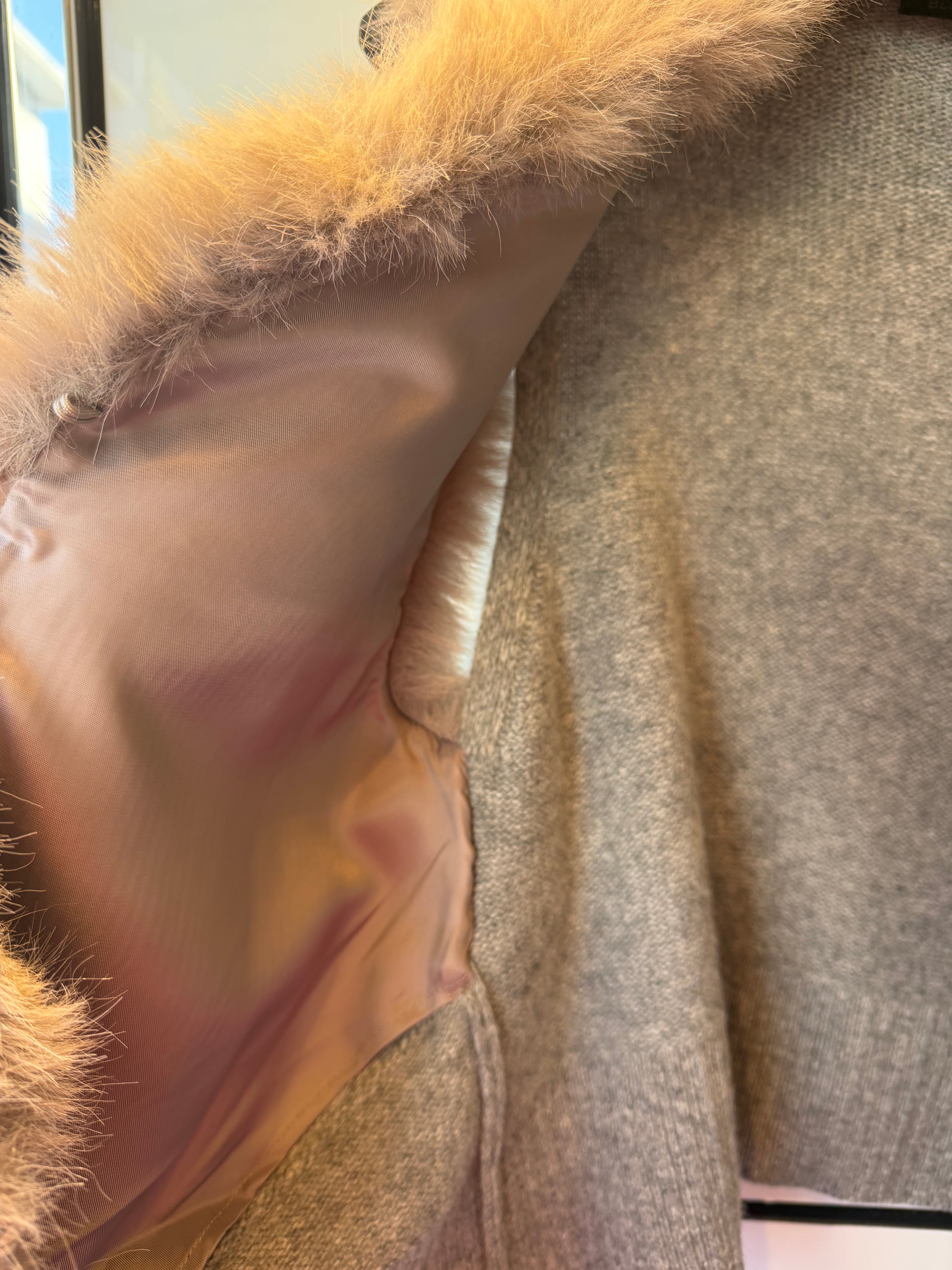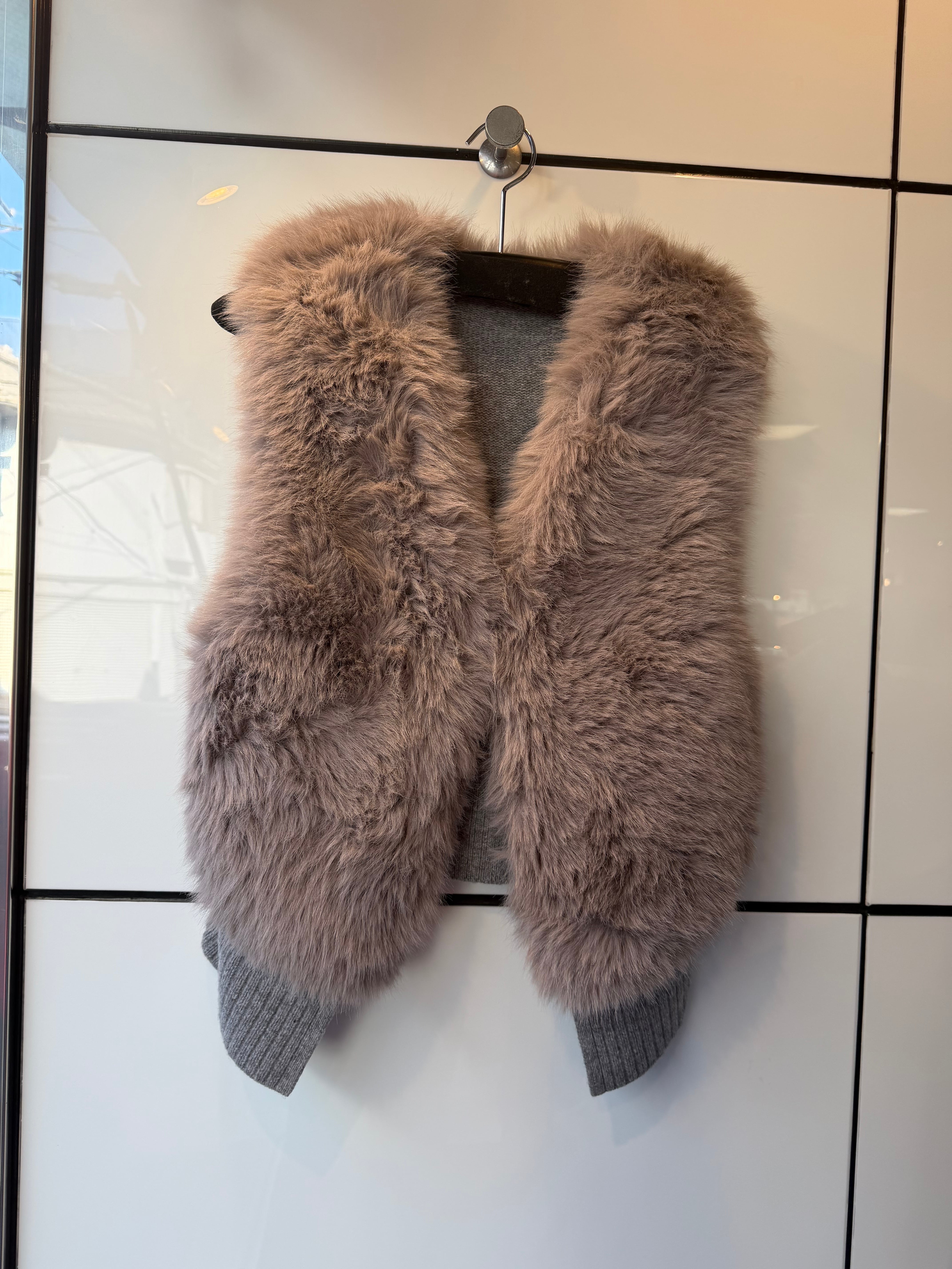 まるでフォックスのような贅沢な毛足のあるエコファー、優雅な着こなしに一役かってくれるおしゃれなファーベストです。