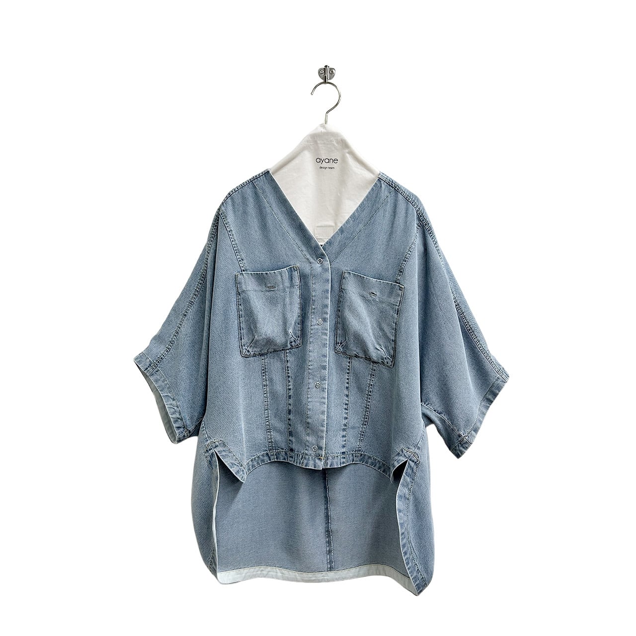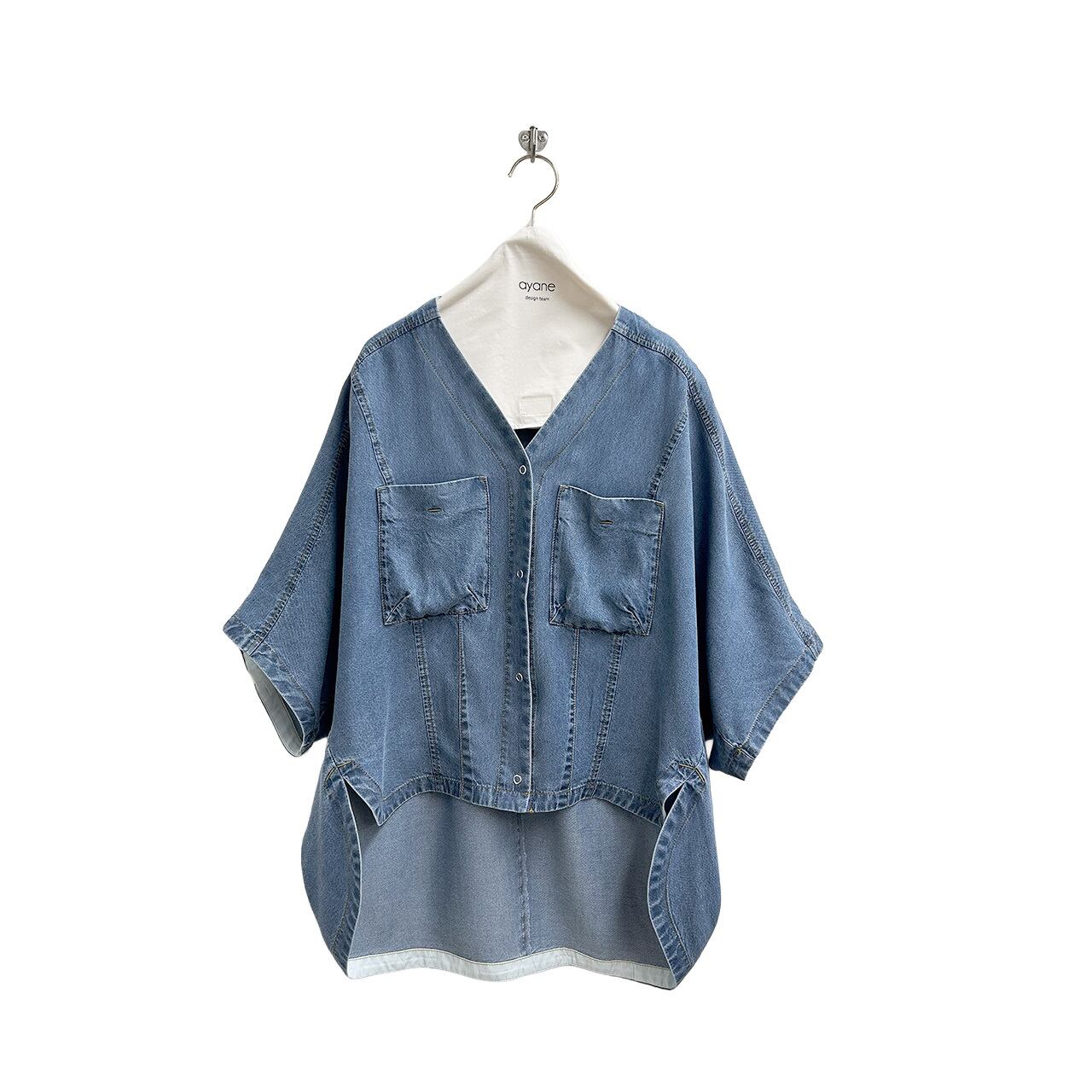 【ayane】テンセルデニムノーカラーシャツ