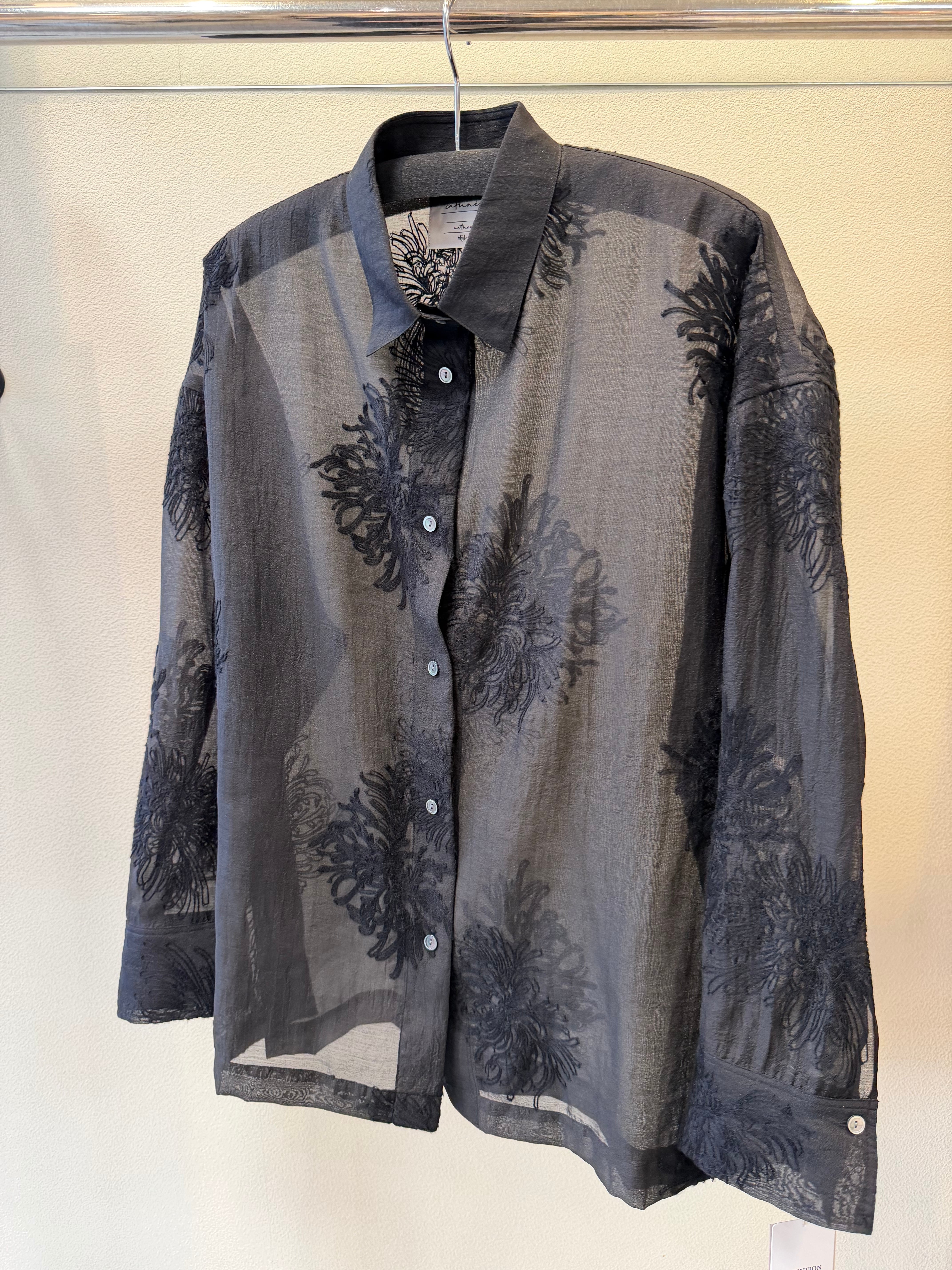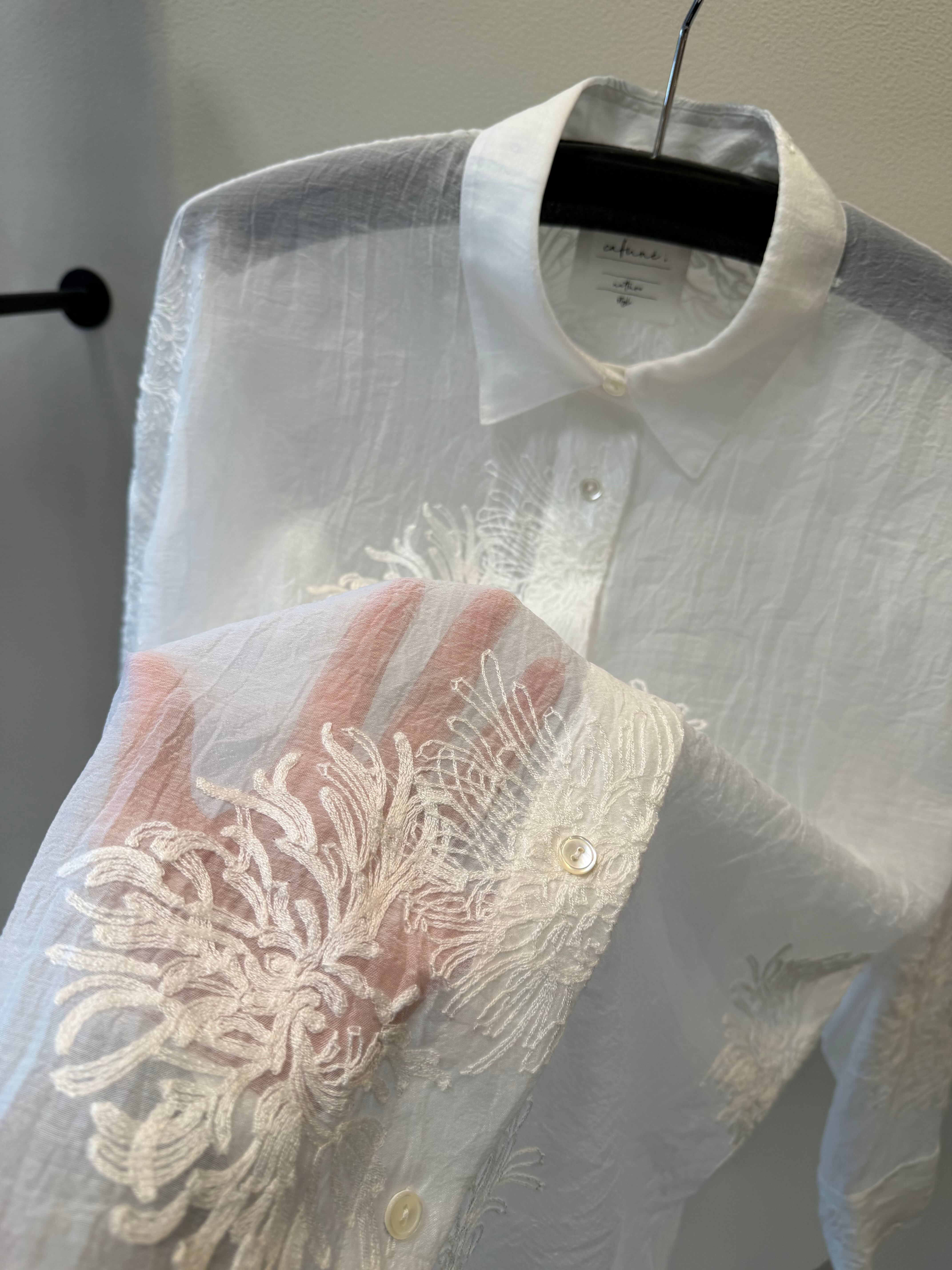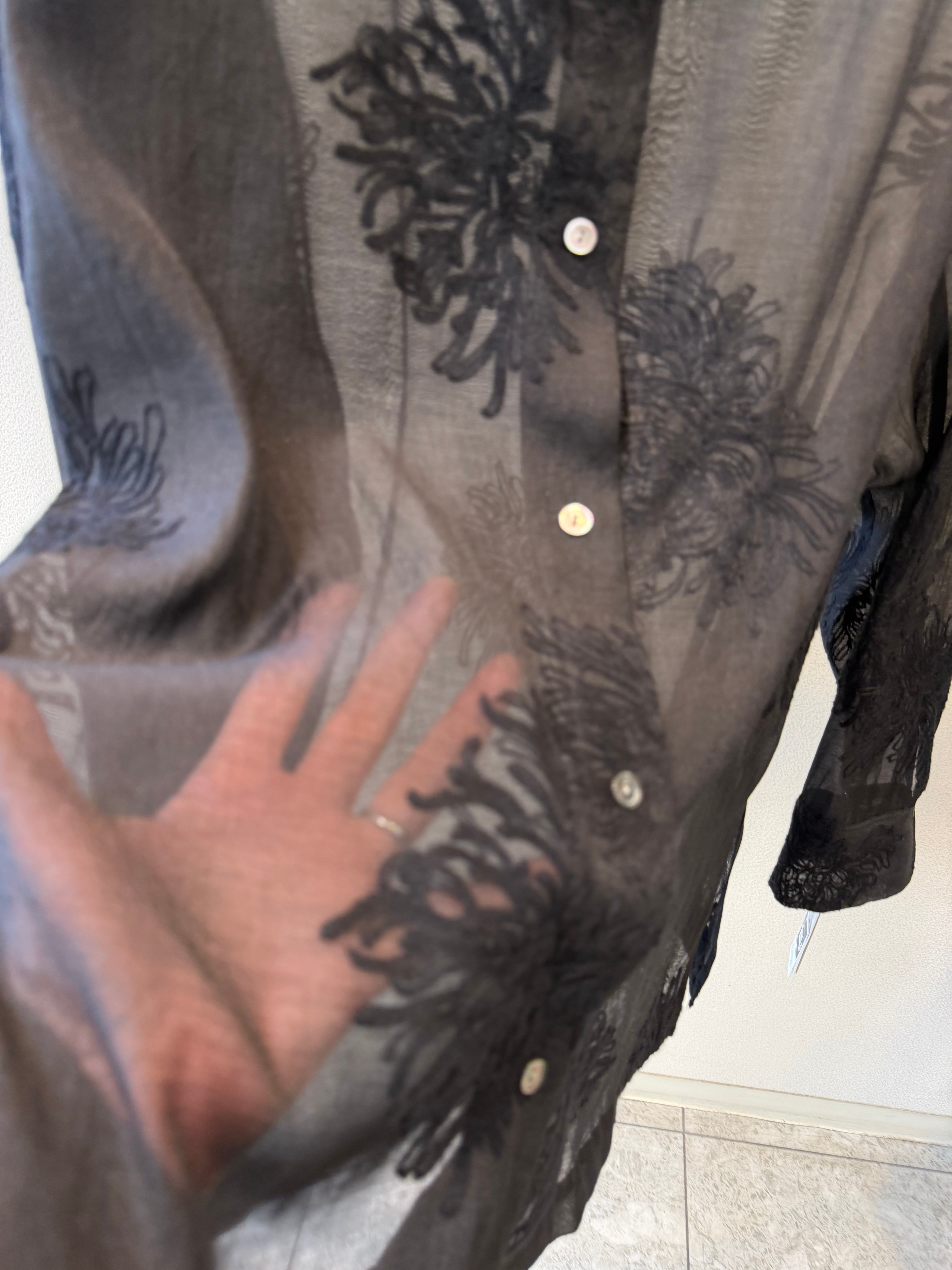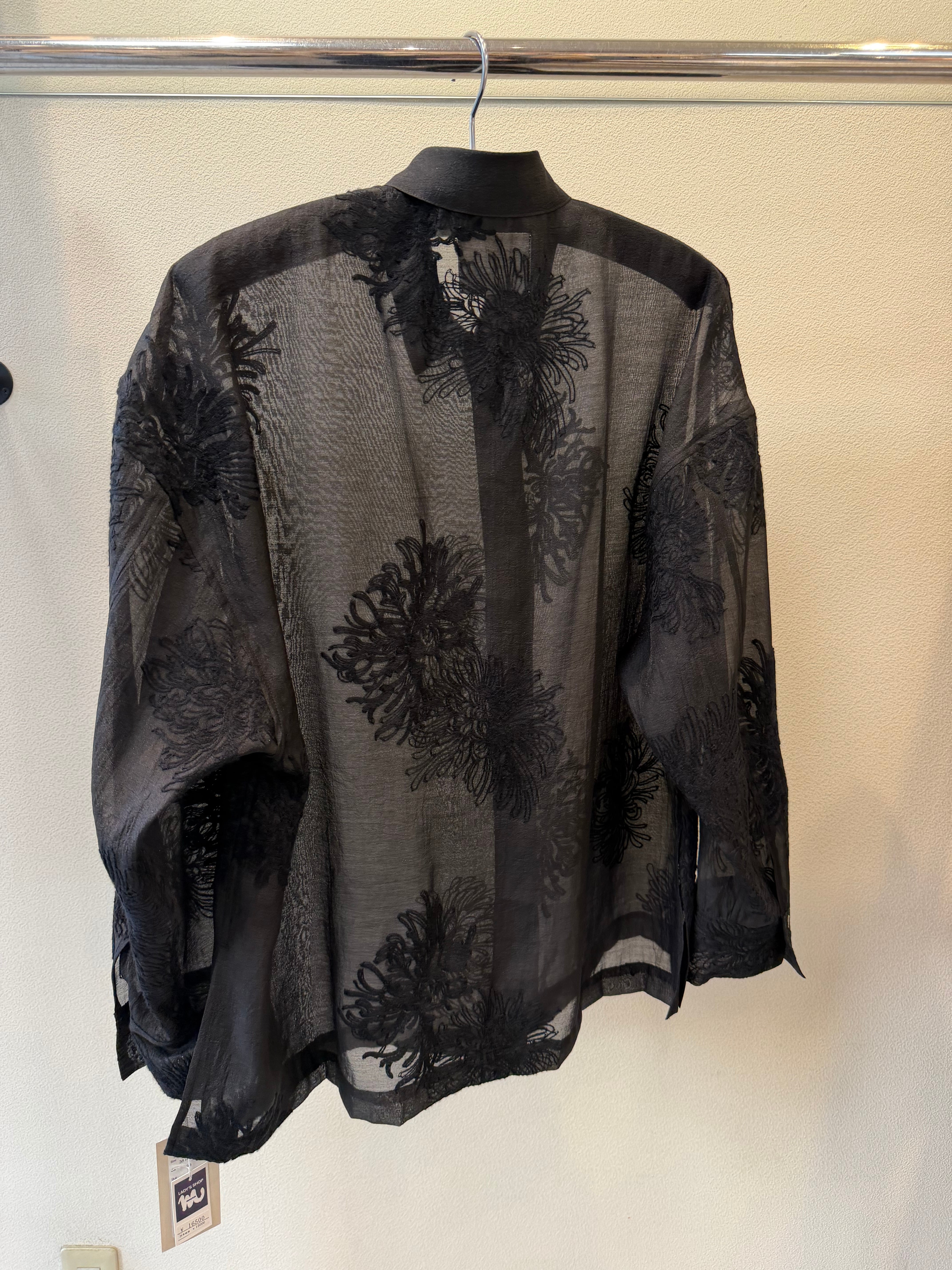 ポリエステルのシアー素材のレースブラウスです。