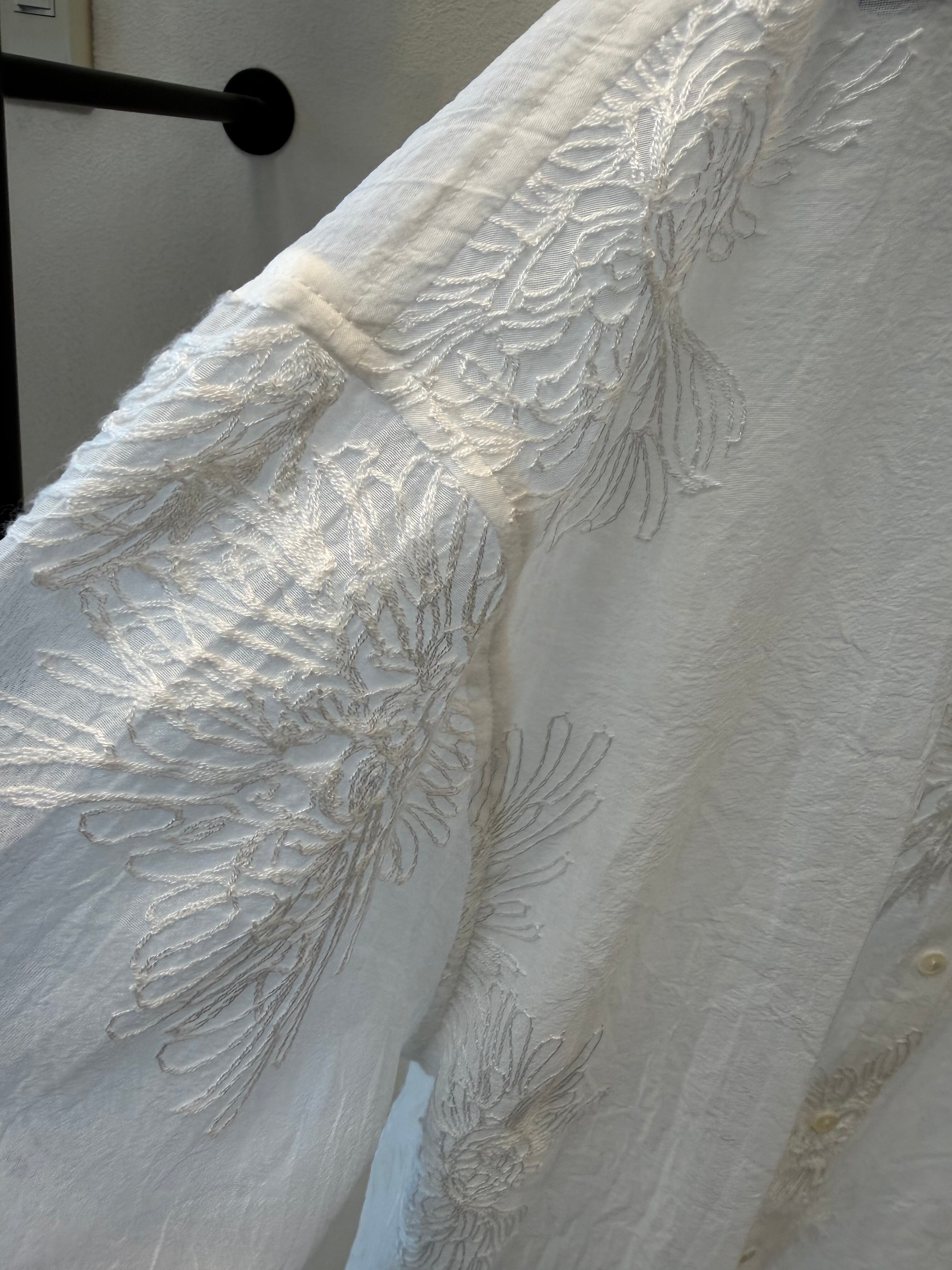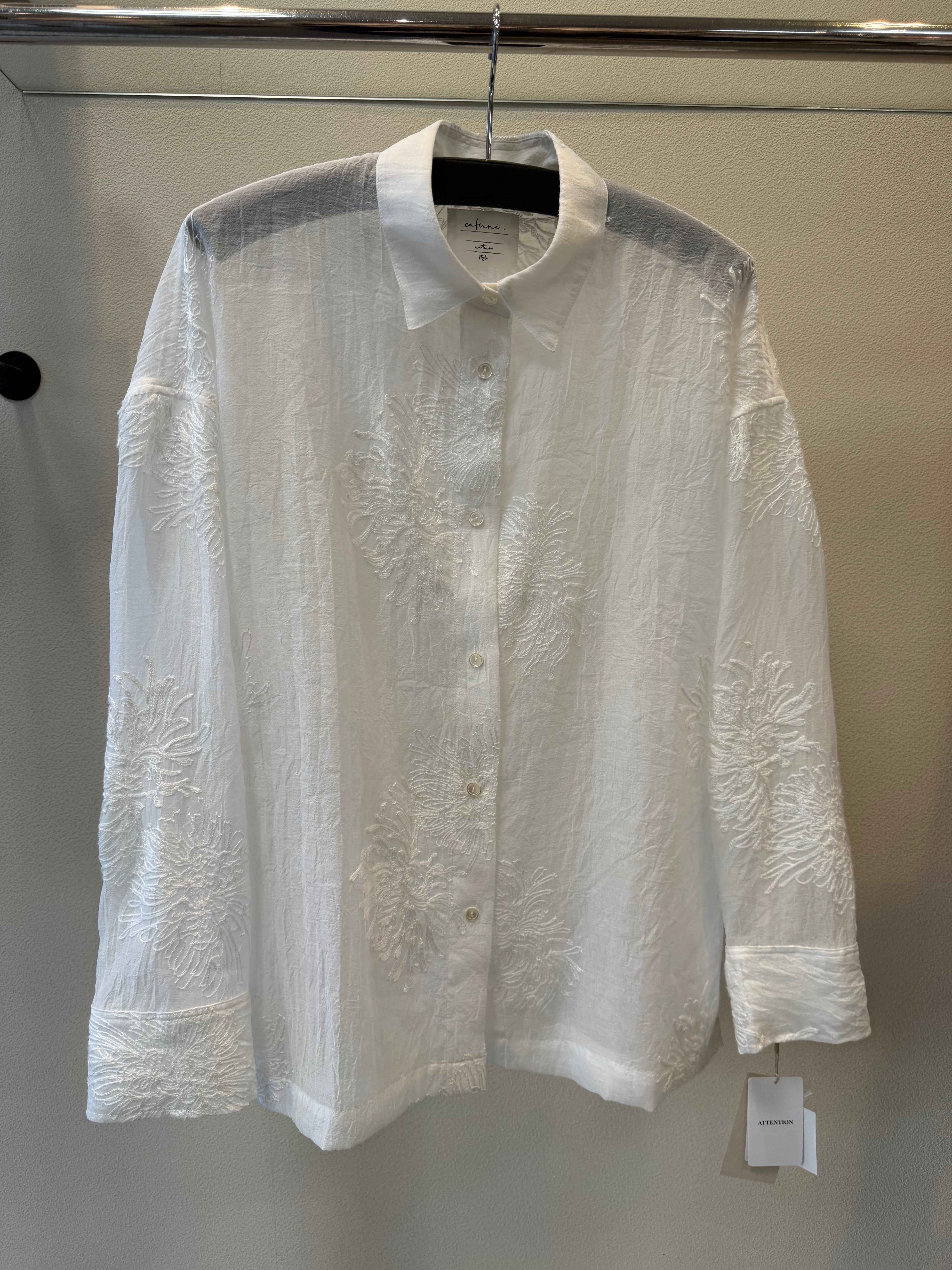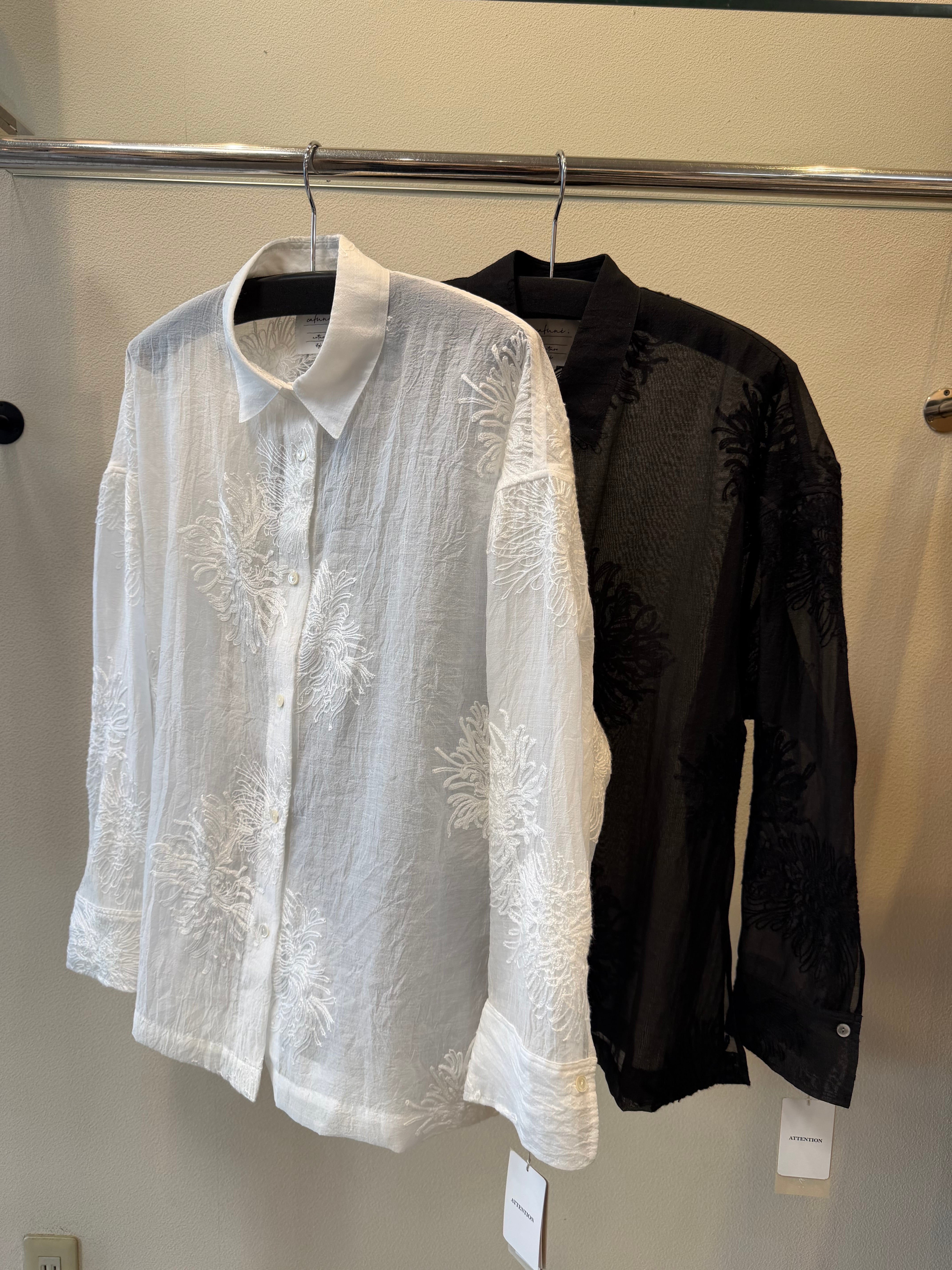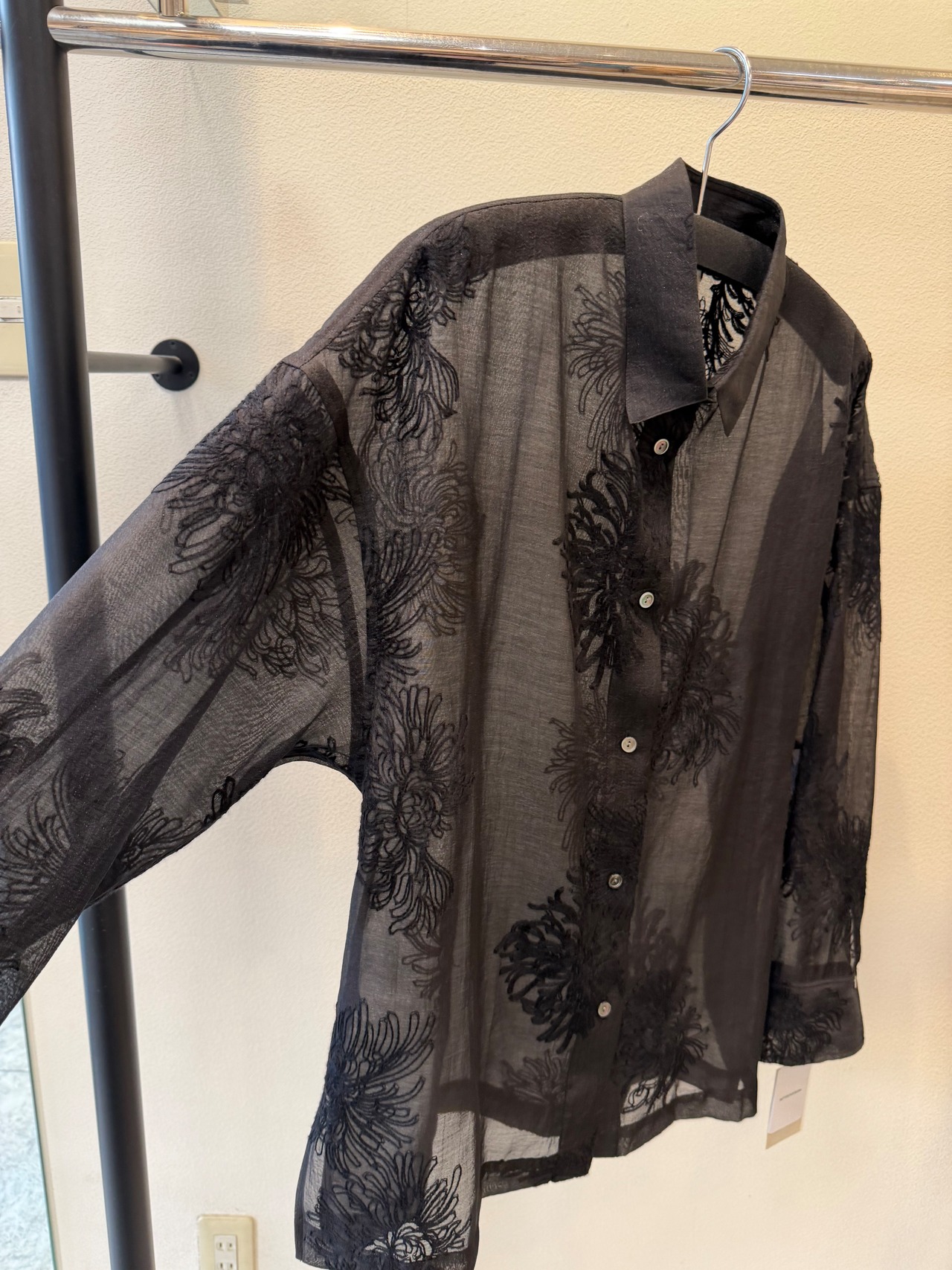 ポリエステルのシアー素材のレースブラウスです。