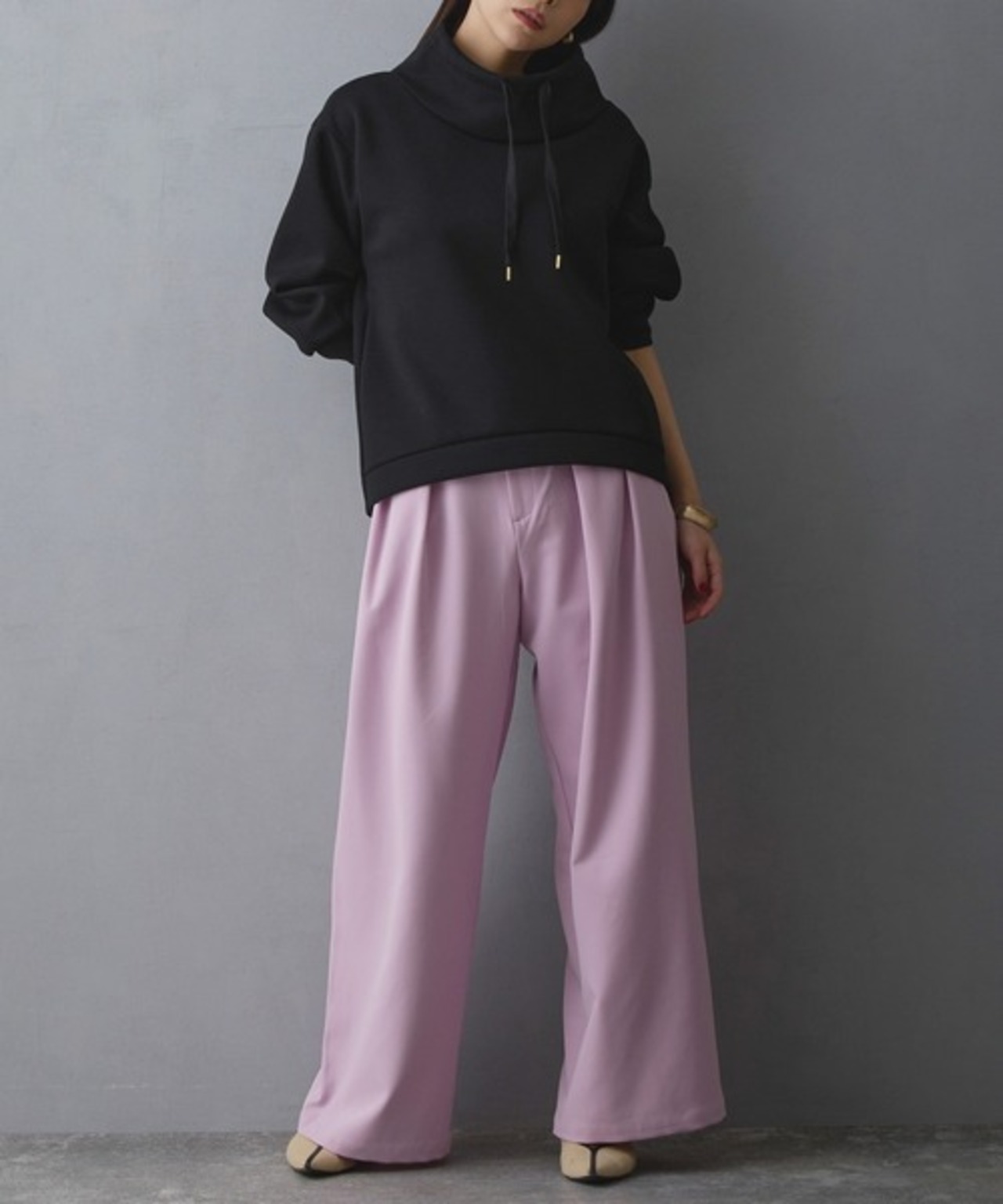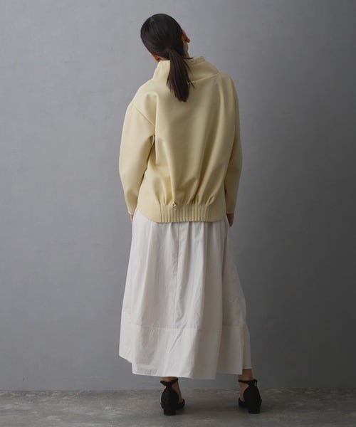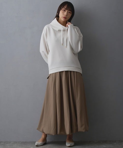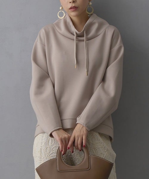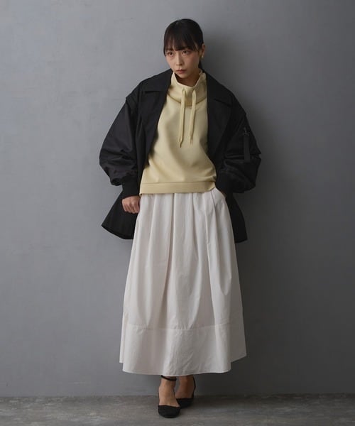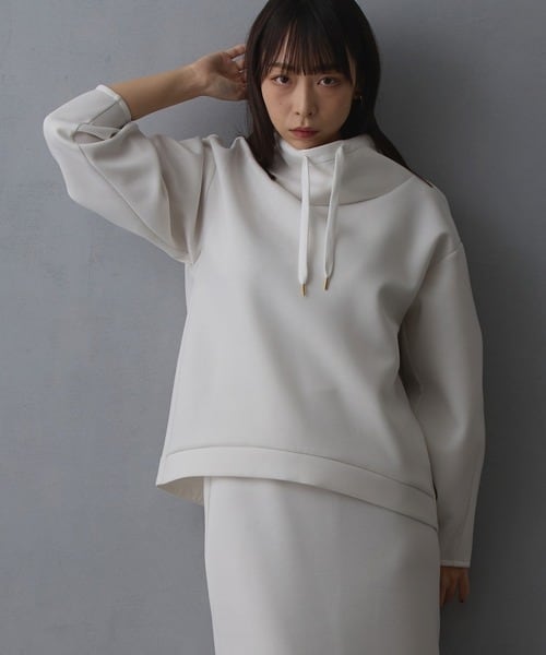 フーディ感のあるゆるめのスタンド衿が、首元をスッキリ見せてくれます