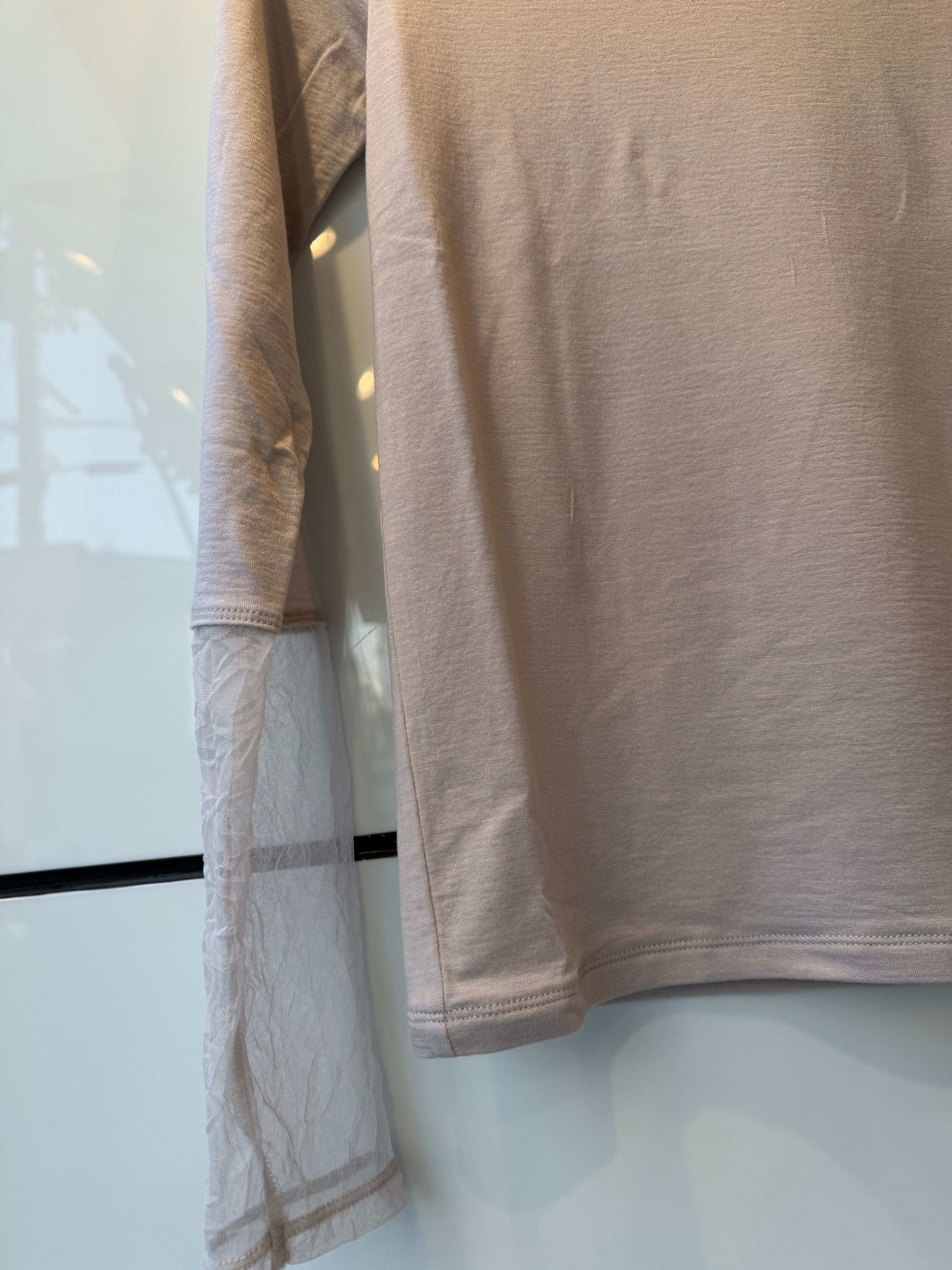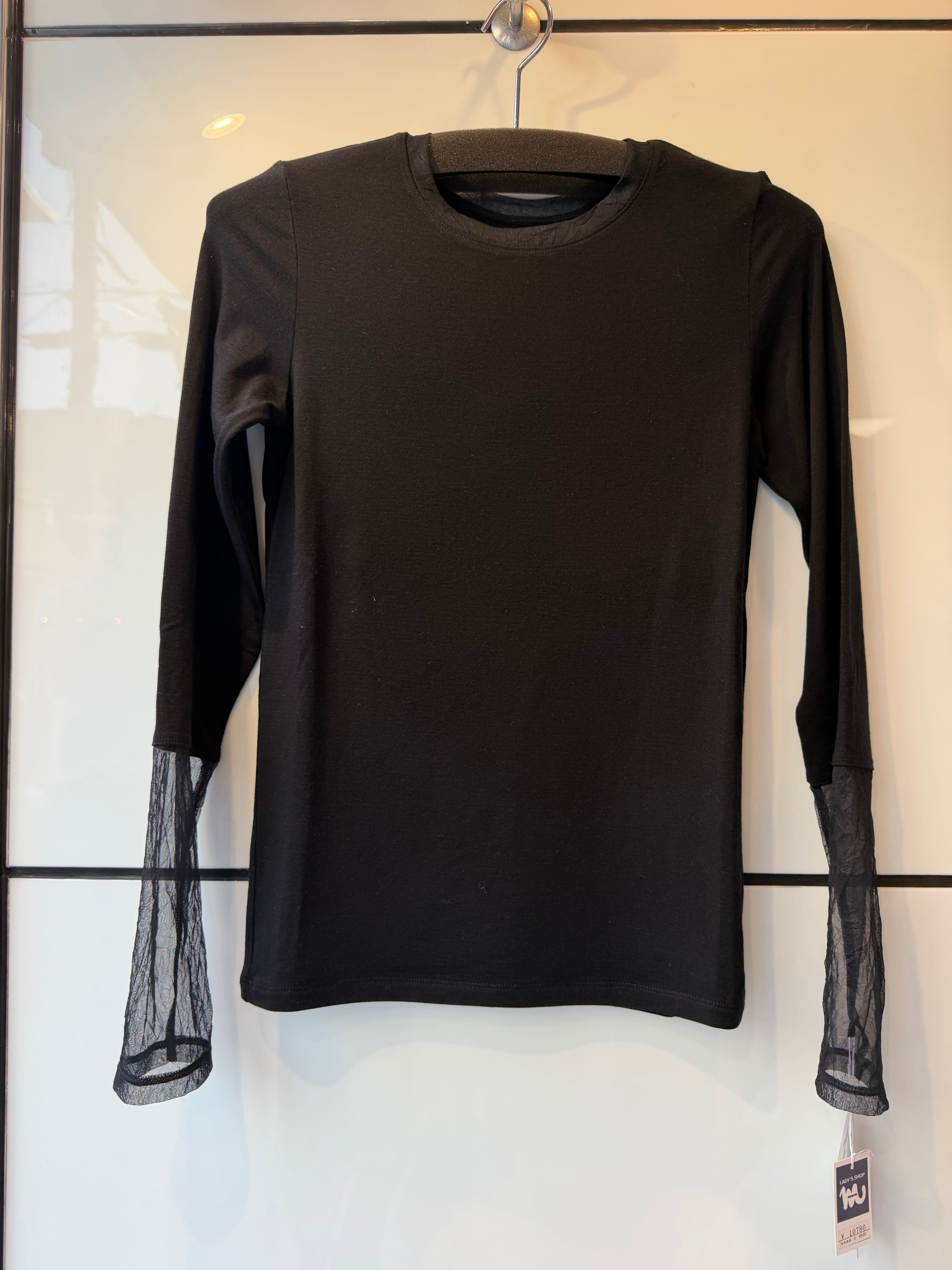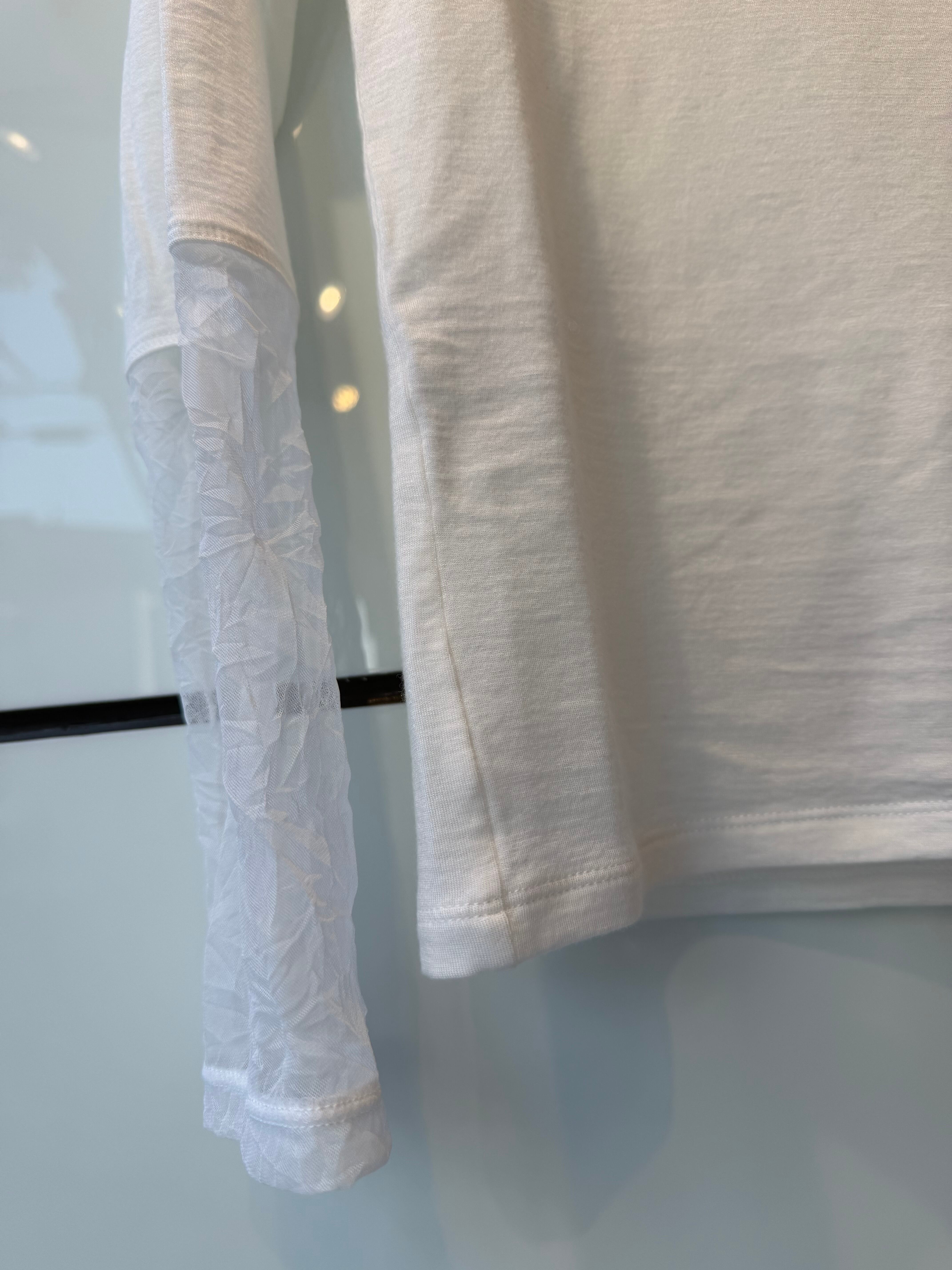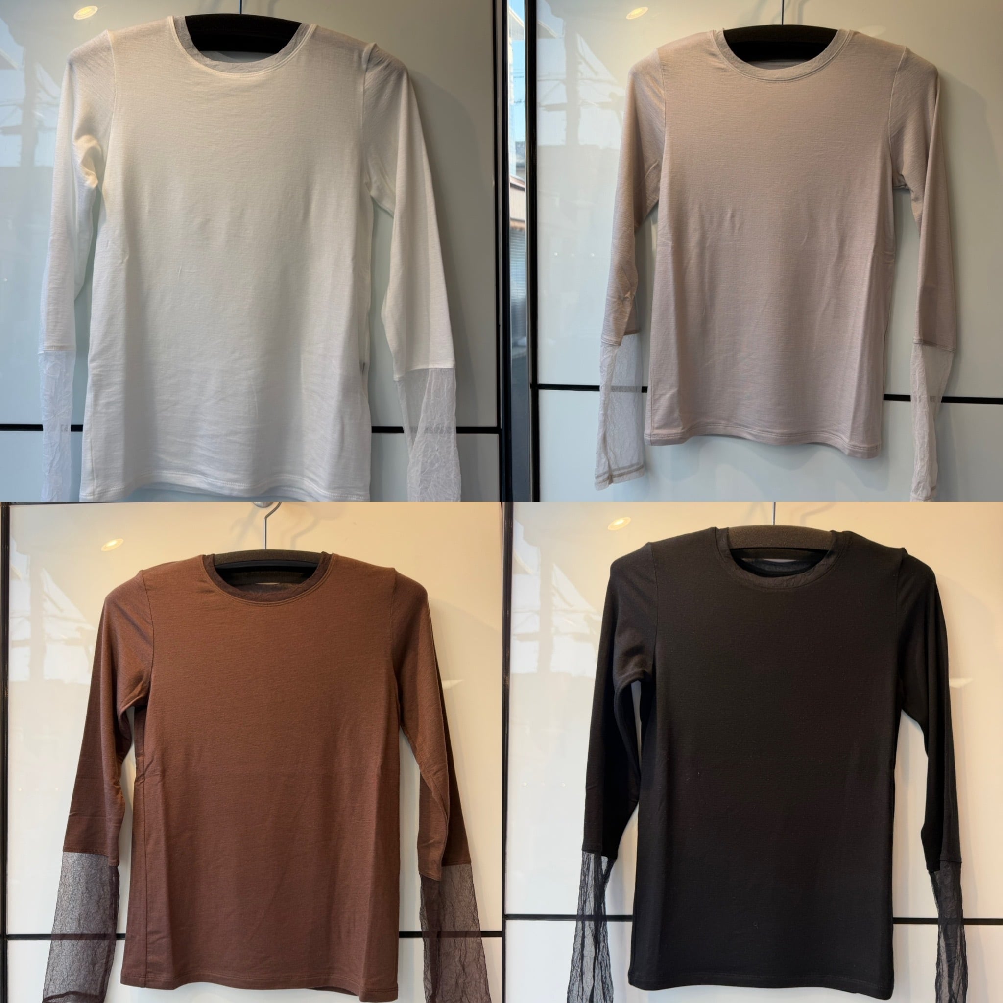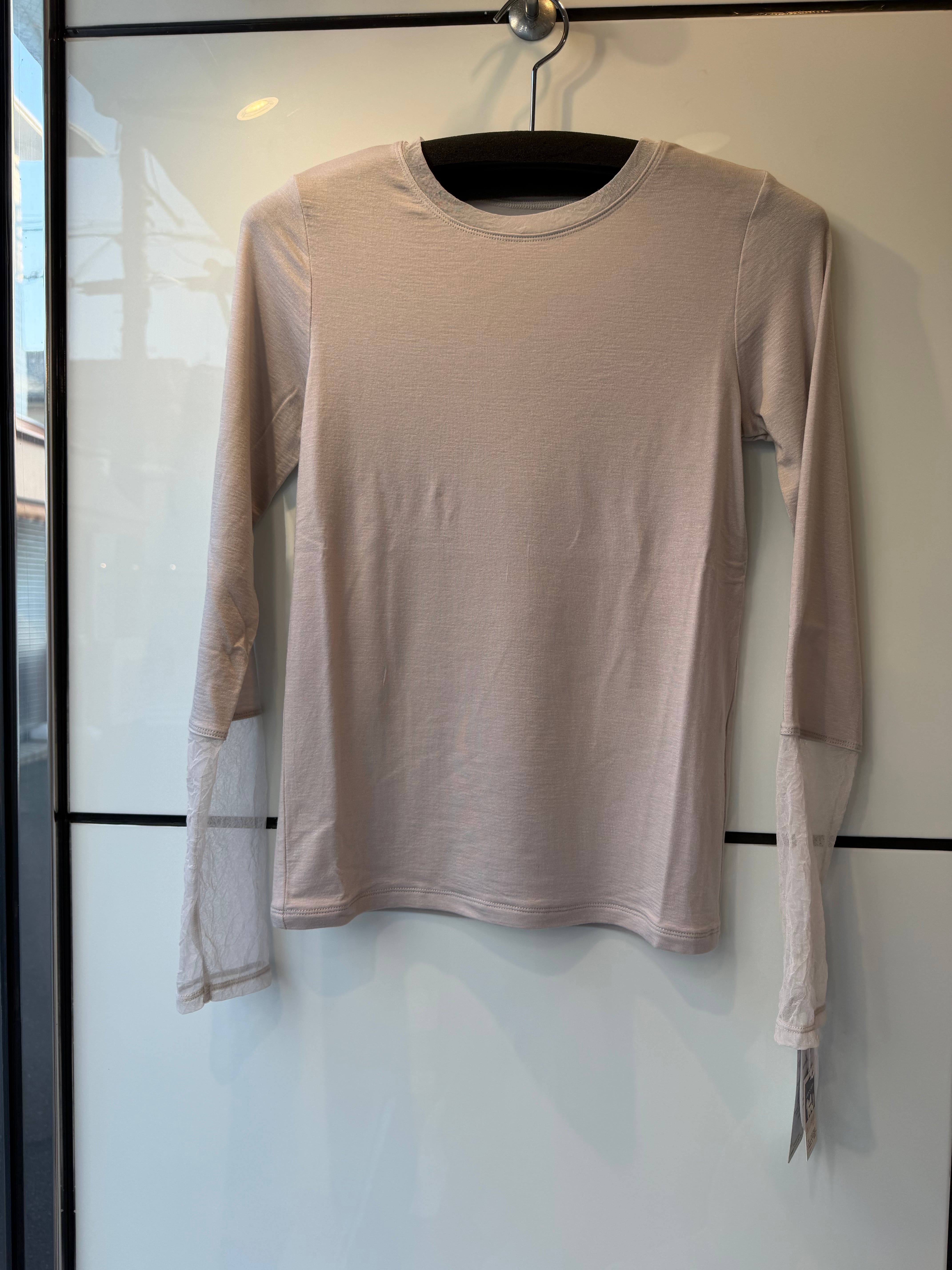 袖口と襟にチュール生地がドッキングされていて、華やかさもプラス。