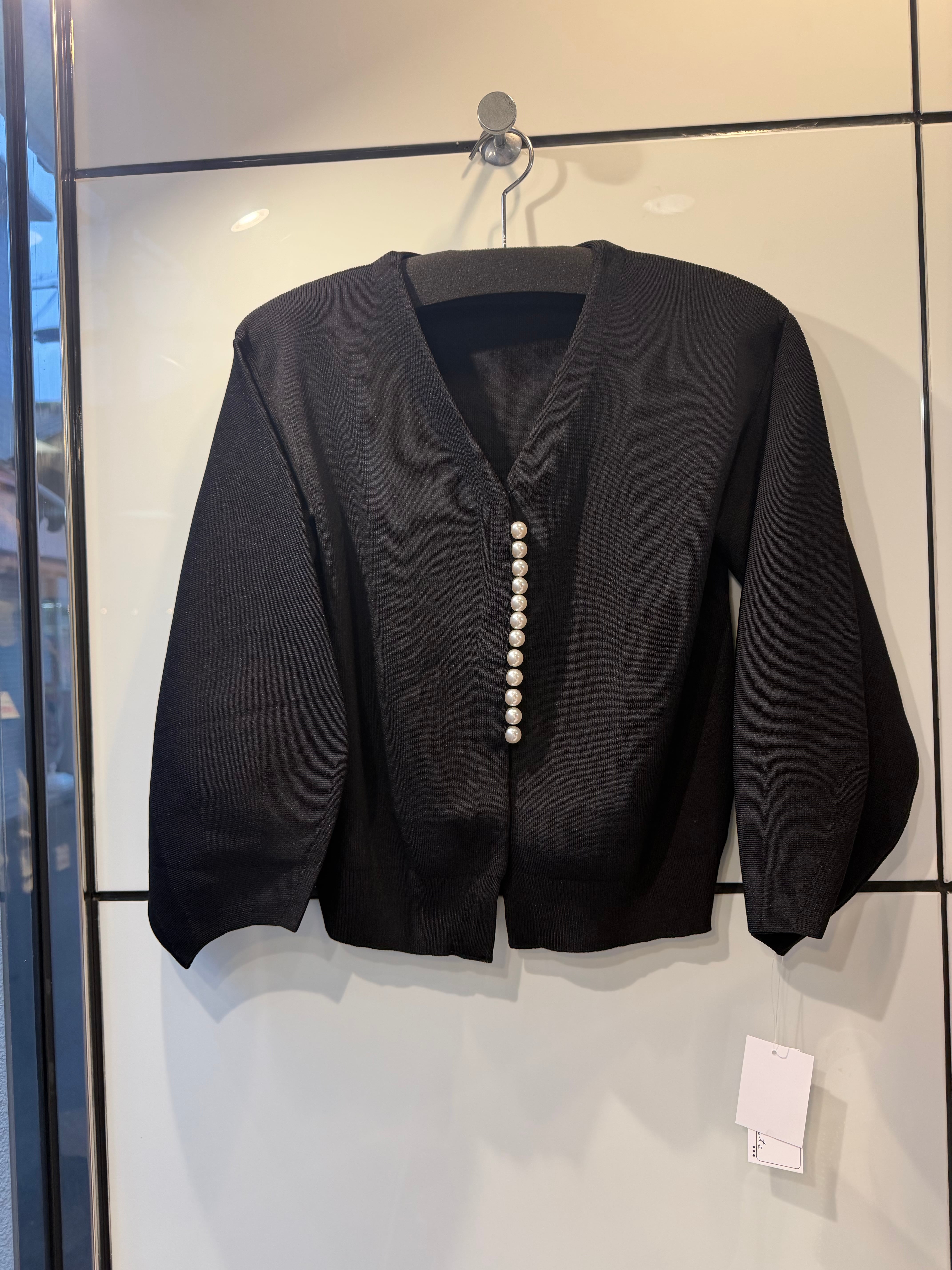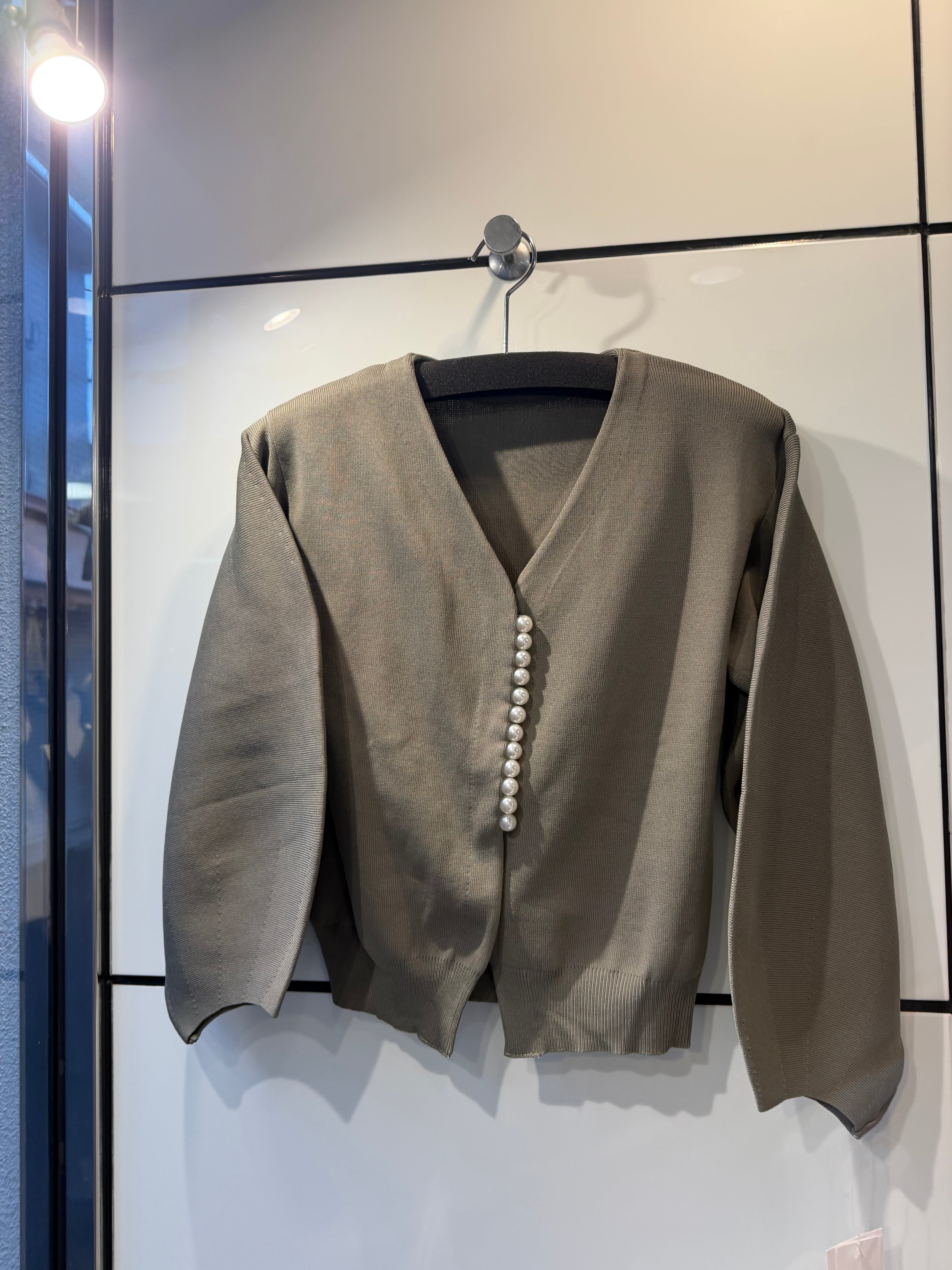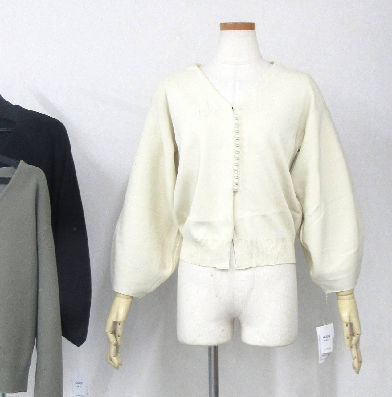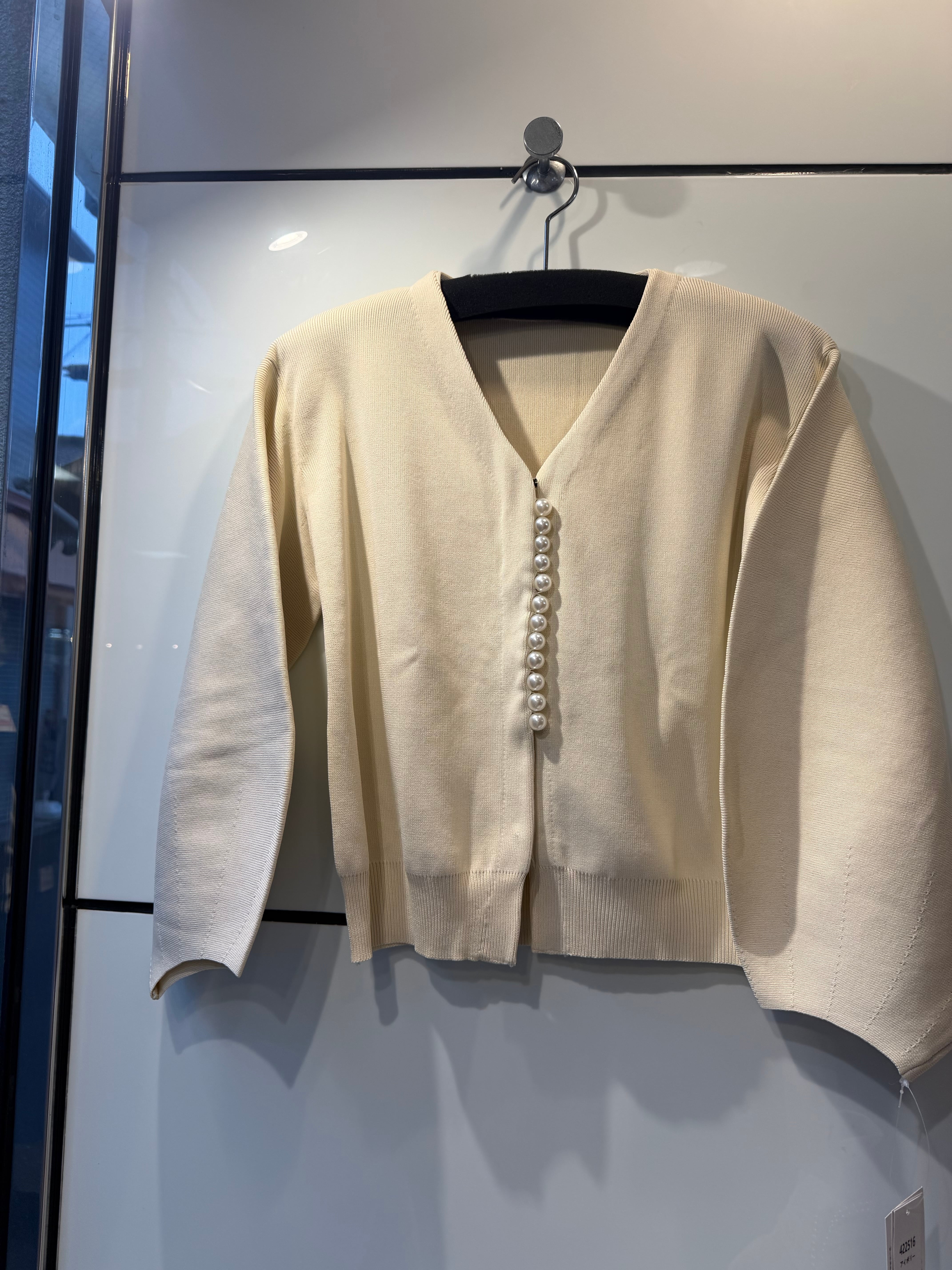 縦に並んだパールがポイントのカーディガン。