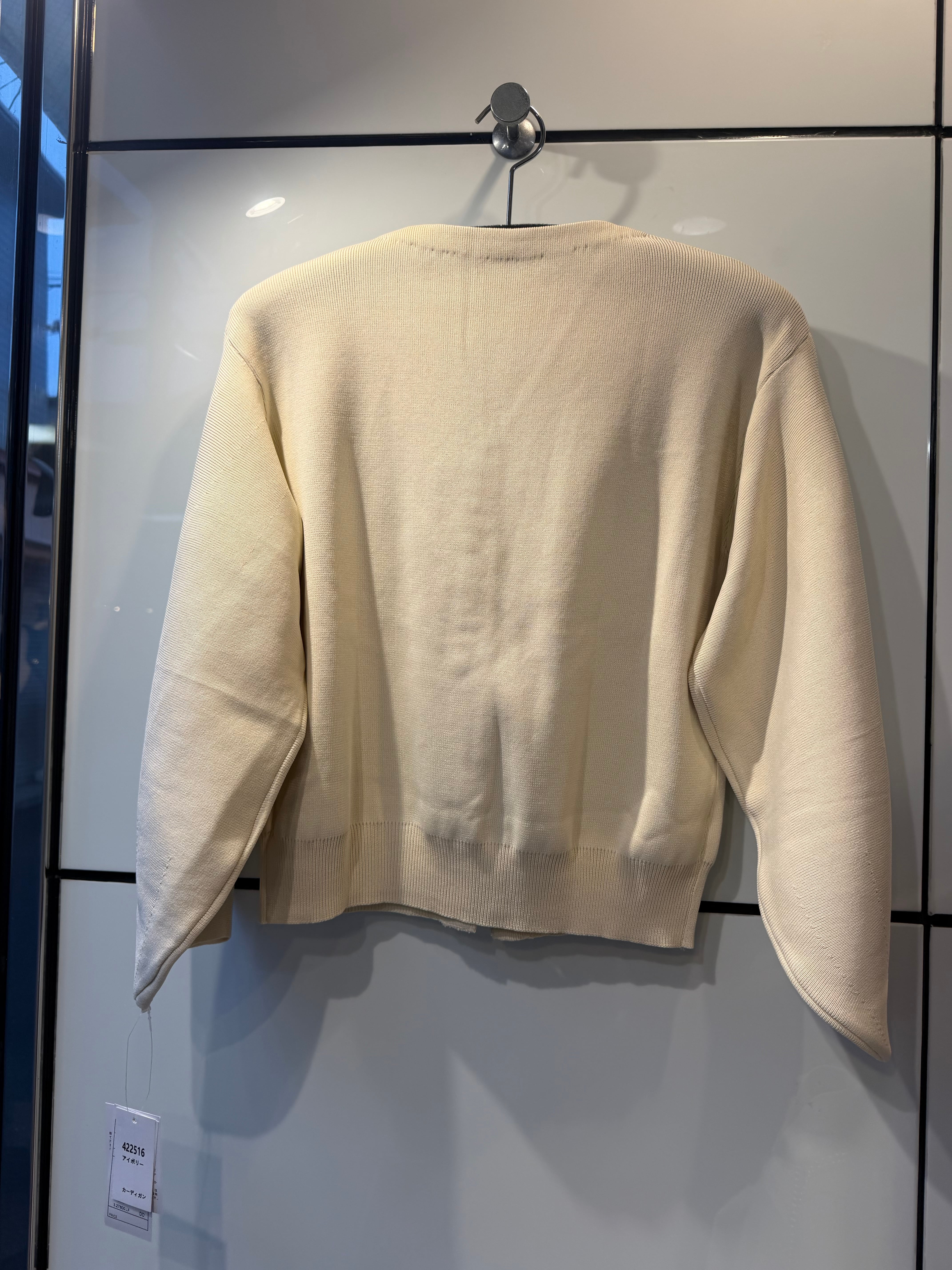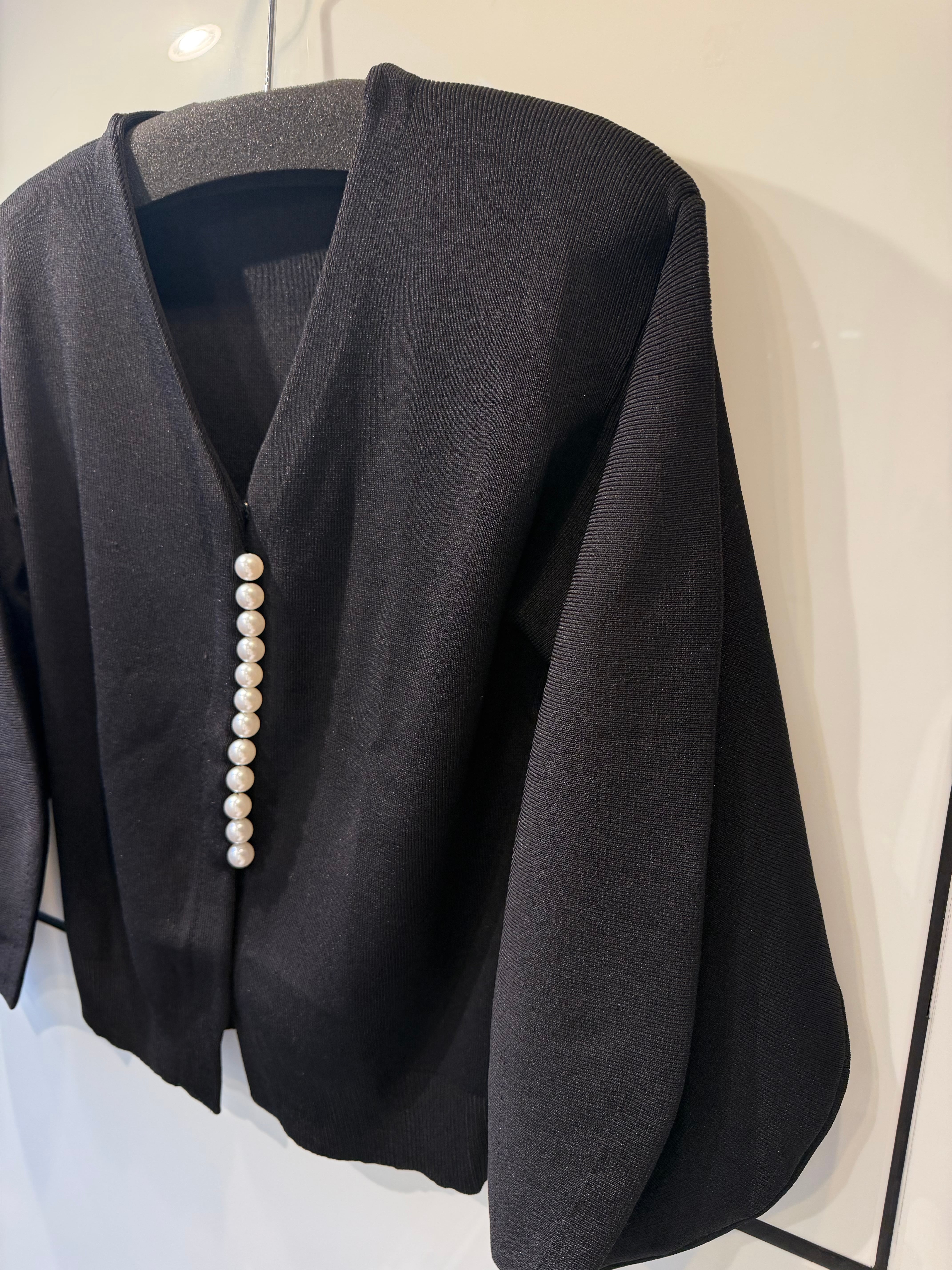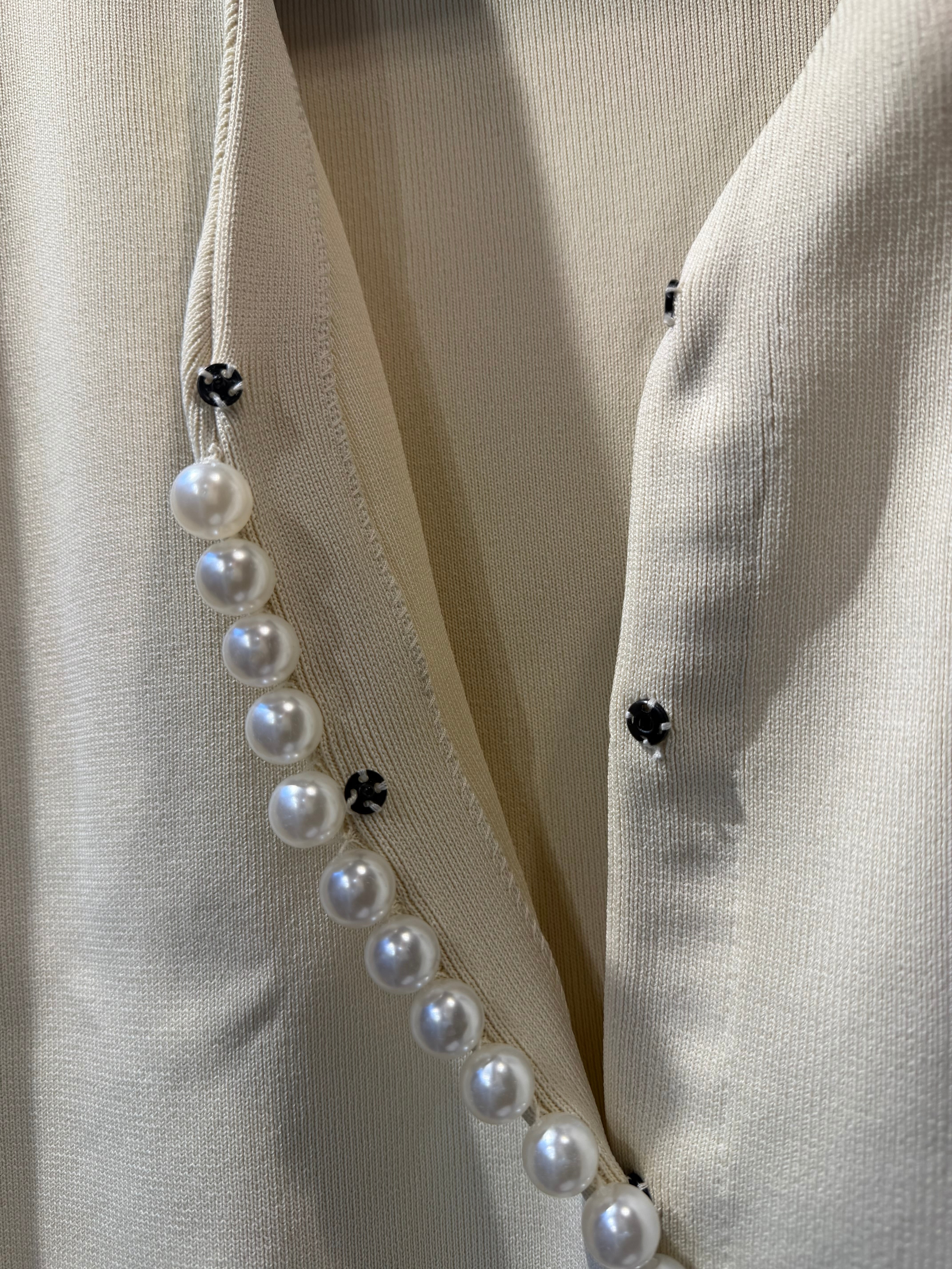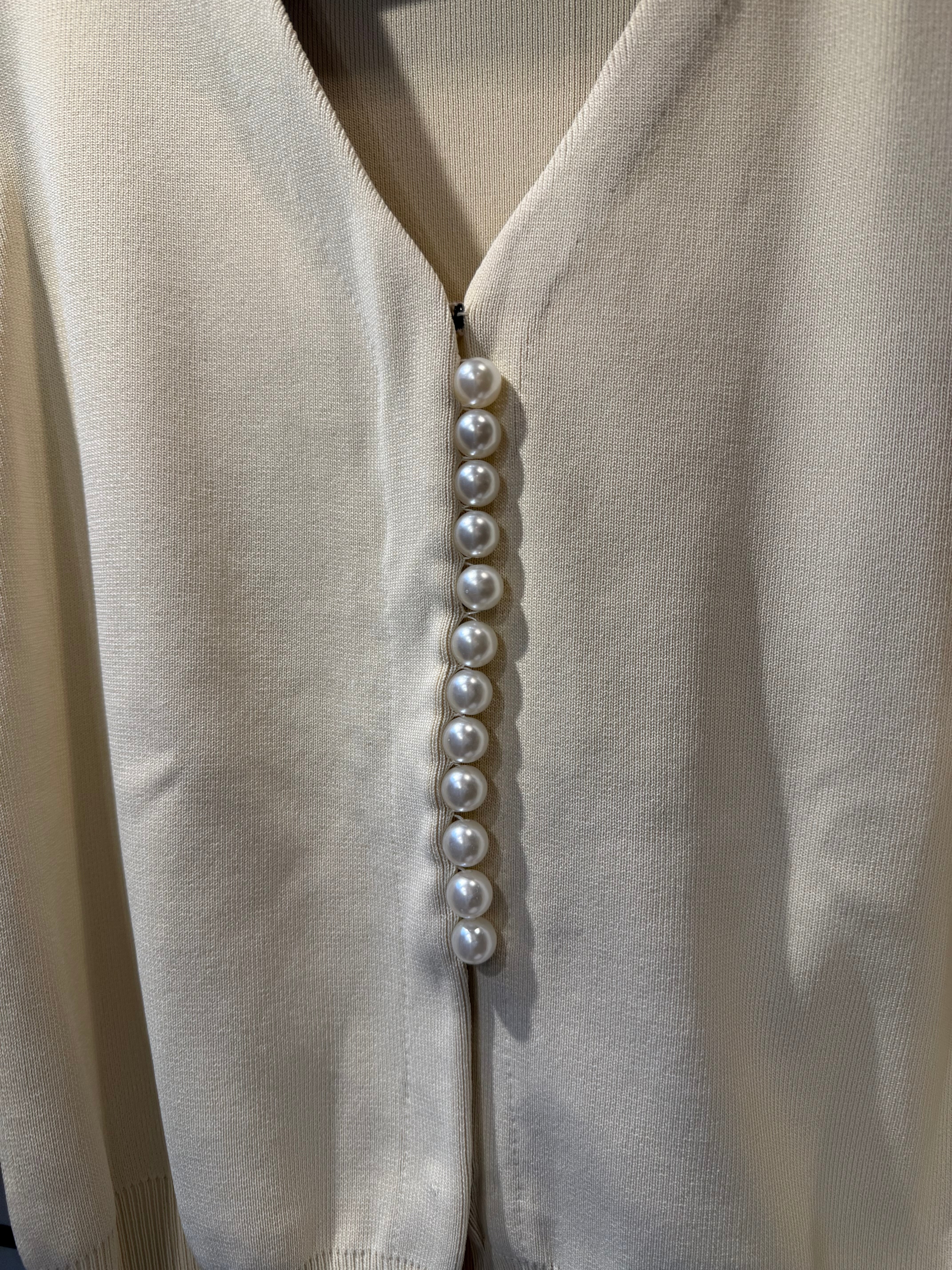 縦に並んだパールがポイントのカーディガン。