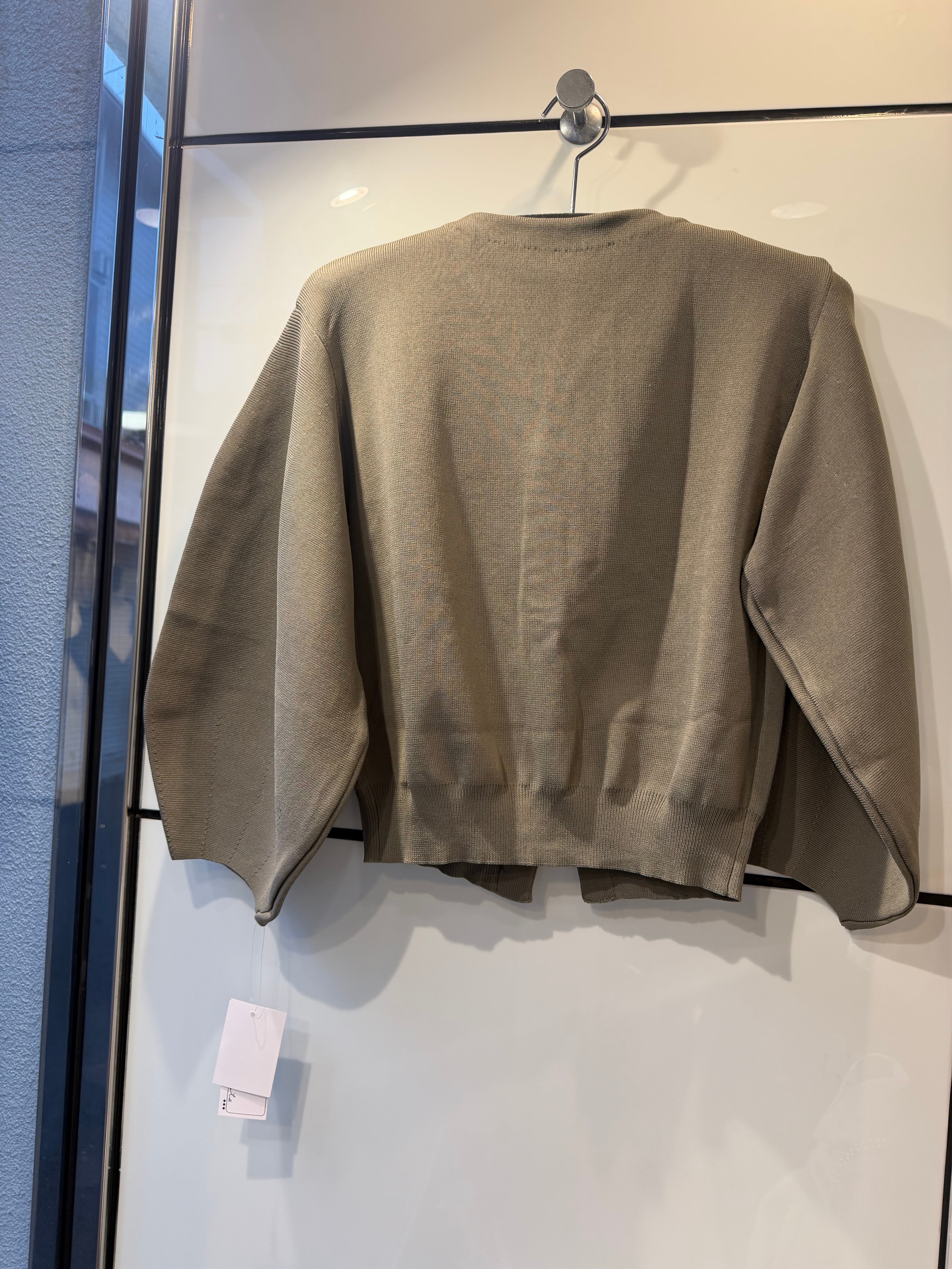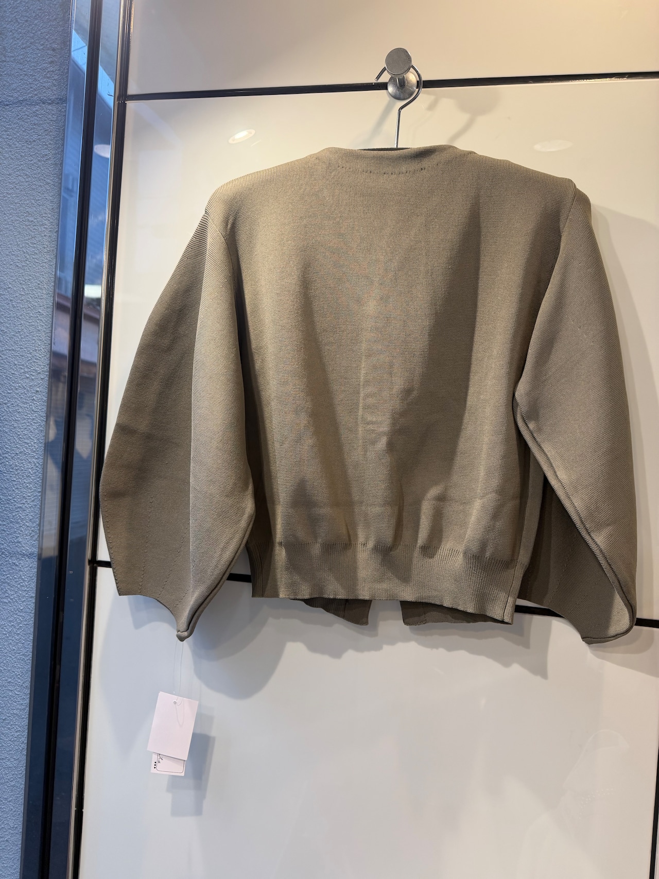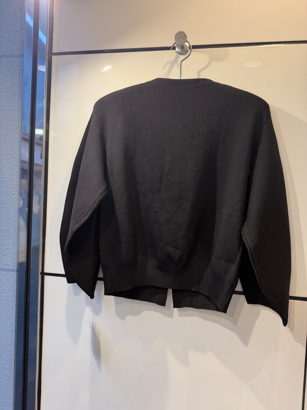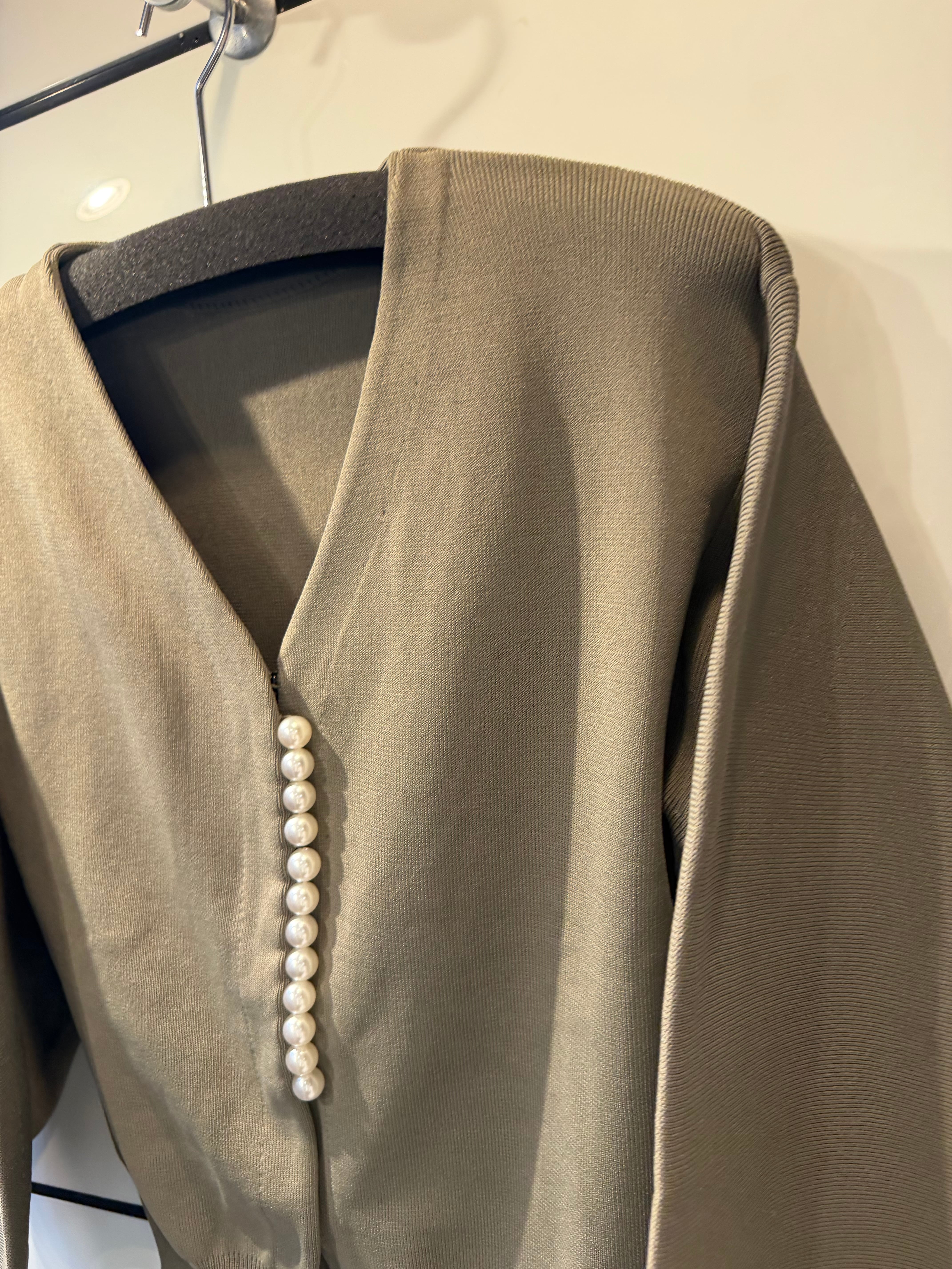 縦に並んだパールがポイントのカーディガン。