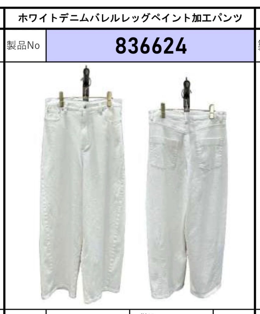 【ayane】ホワイトデニムバレルレッグペイント加工パンツ/836624