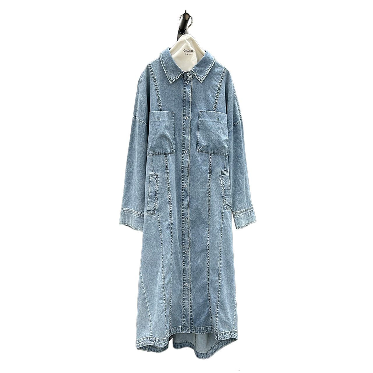 【ayane】ストレッチダンガリーロングシャツ